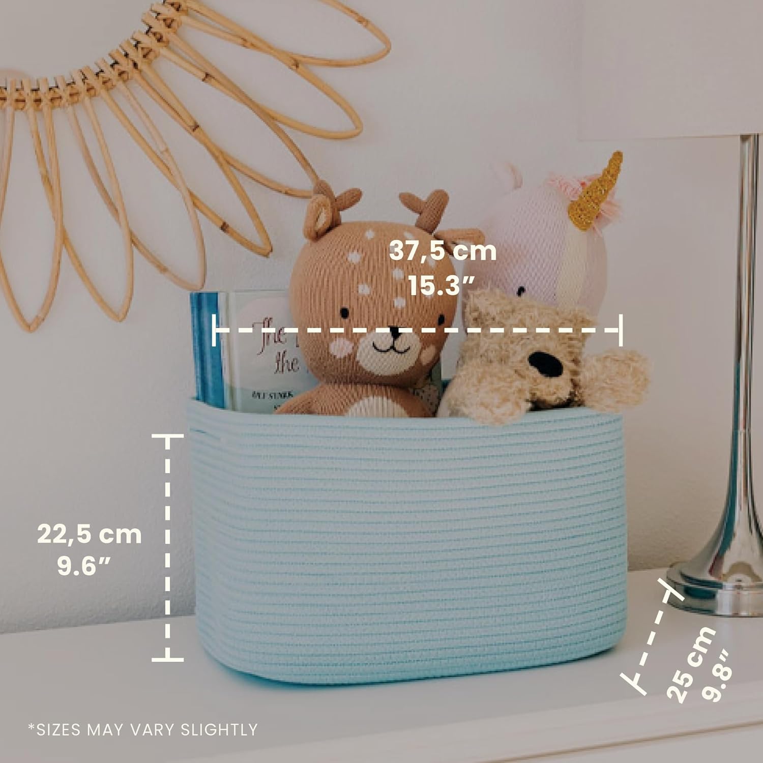 • All-Purpose Rainbow Storage Baskets – This 15” x 10” x 9” rainbow rope baskets for organizing is ideal for keeping your everyday home life more organized and provide plenty of compact storage space for arts and crafts, rainbow classroom decor, kid’s toys, or nursery room accessories