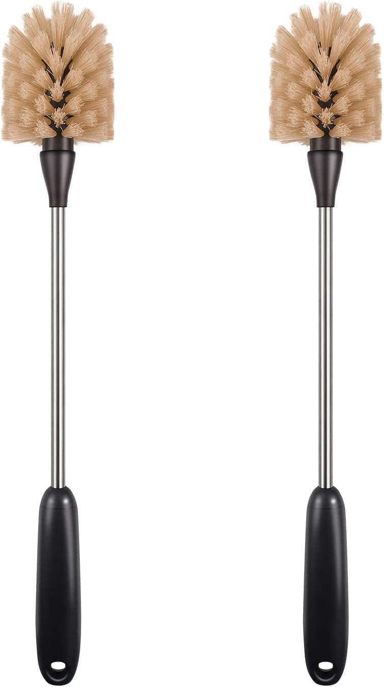 2 Pack Water Bottle Brush, 15-inch Long Handle Cleaning Brush, Kitchen Scrubber, Bottle Brush Cleaner, Suitable for Water Bottles, Cups, Glasses, Baby Bottles, Wine Glasses, Brown