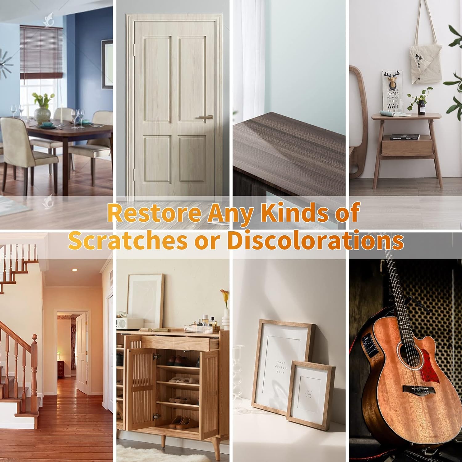 • EXCELLENT FIX ANY COLOR WOOD: The hardwood floor scratch repair kit can restore nicks, stains, scuffs and discoloration on any wood floors and furniture like beds, shelves, cabinets, tables, frames, doors, laminate, baseboard, veneer and much more. This is ideal for rejuvenating your furniture