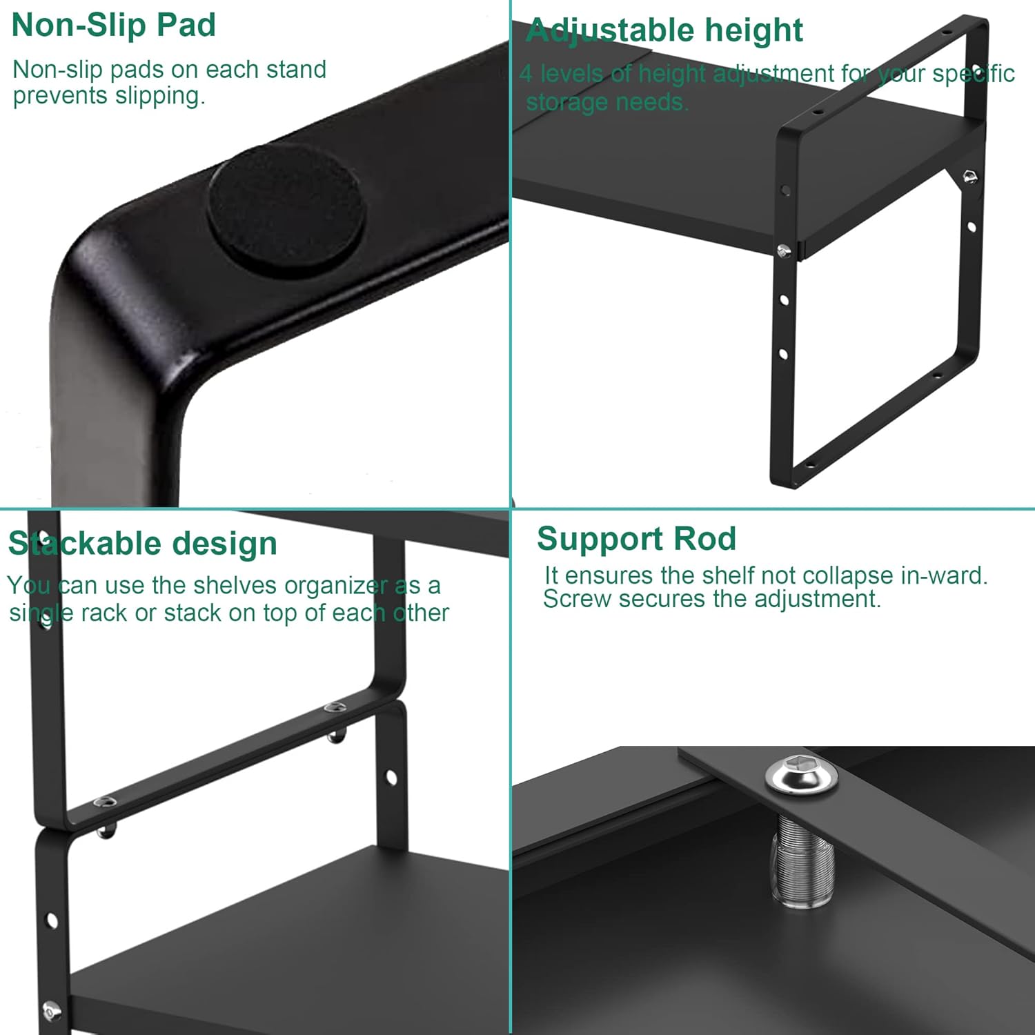 • 【Multifunctional storage】--This shelf will double your space! It can be used in various places in your home, including kitchen cabinets, desks, pantry, bathroom cabinets, closets, countertops, under the sink or any place that needs extra space to maximize storage and organization.