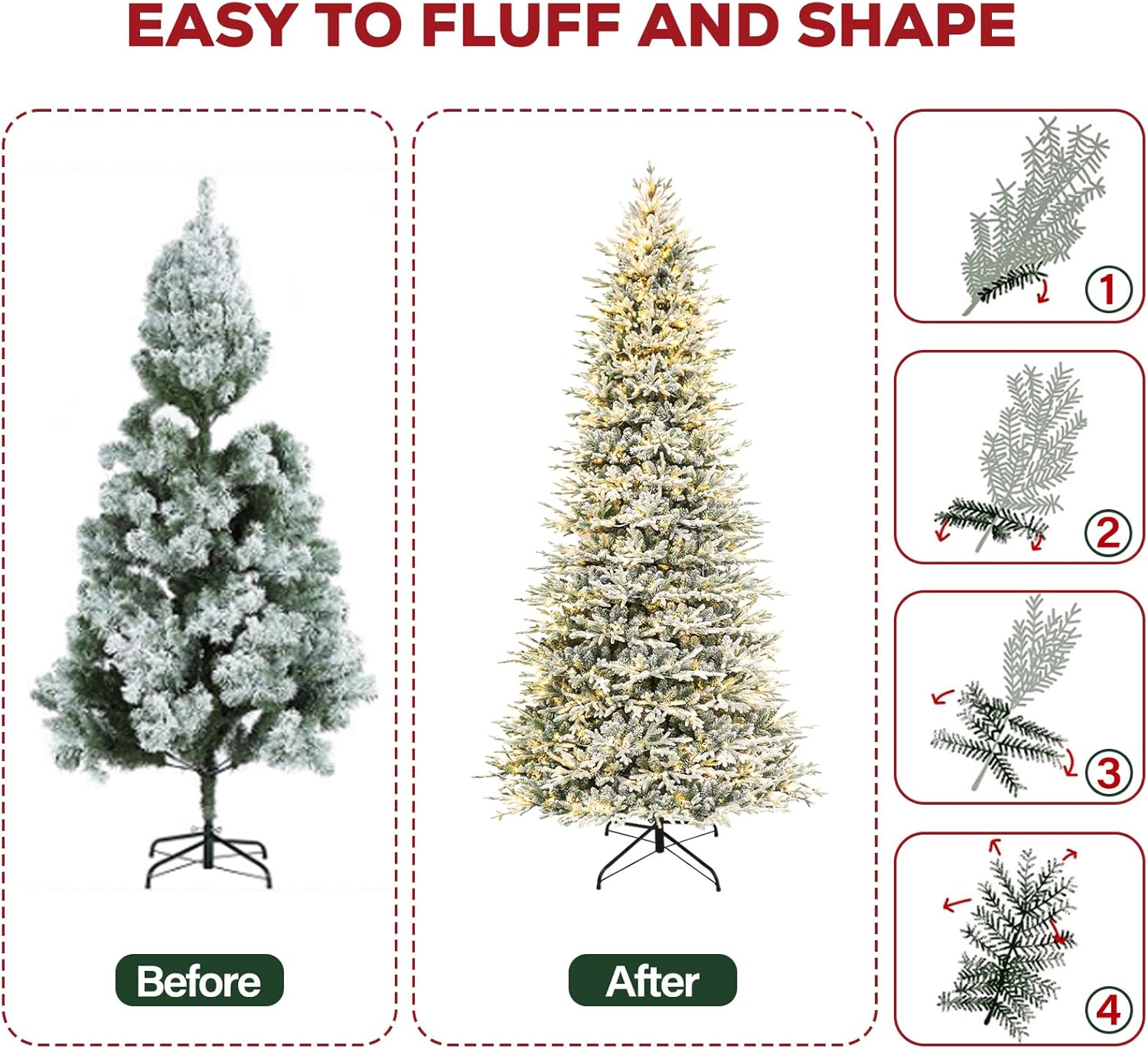 • NATURAL & Full LOOK: Measures 12 feet tall, 72 inches diameter at the base. Featuring snow sprinkled branch tips which creates a wintry feel, 8109 PE& PVC branch tips for a full and life-like look, this snow flocked Christmas tree can be easily fluffed and shaped for a splendid and natural display and also provides abundant space to showcase your favorite ornaments.