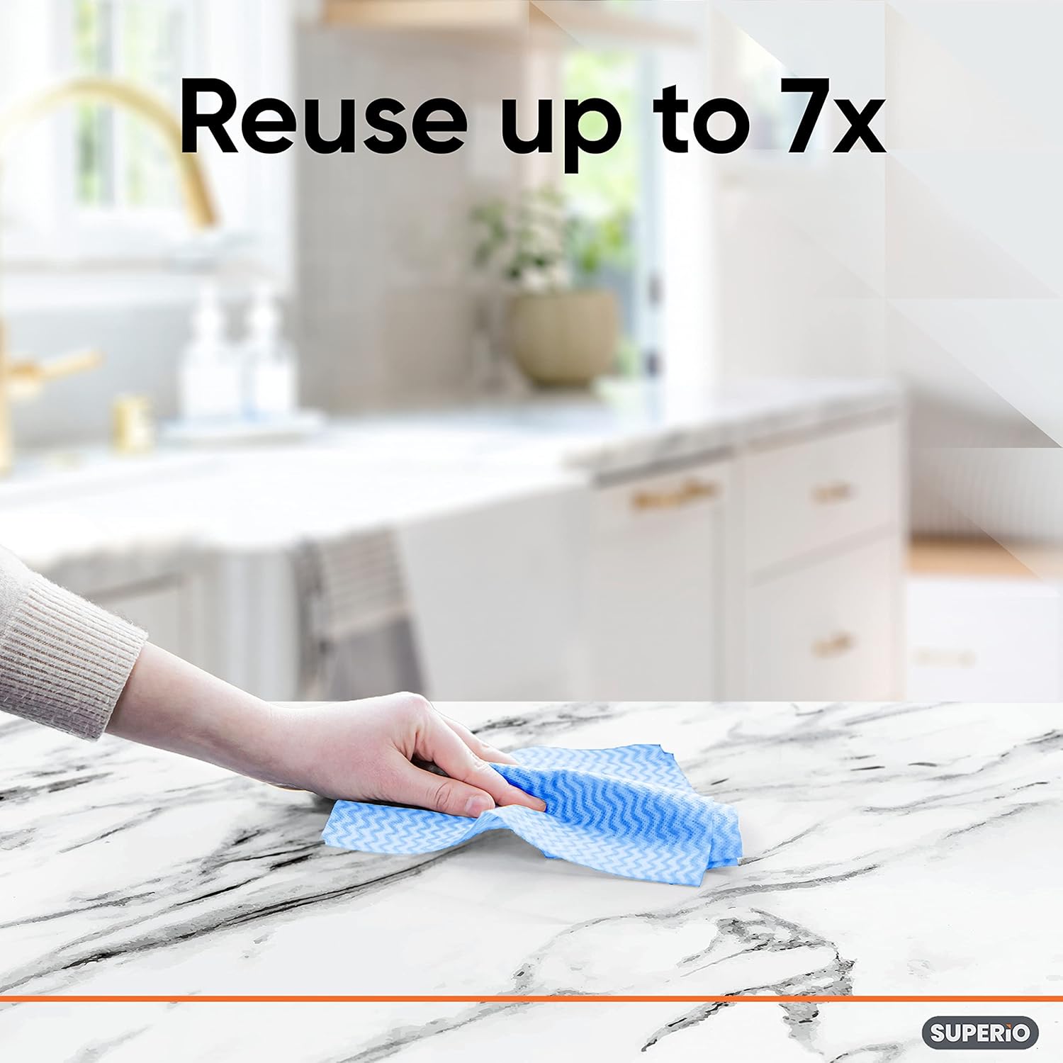 Superio Handy Wipes for Kitchen - Blue Reusable Multi-Purpose Heavy-Duty Cleaning Cloth for House, Bathroom, and Office. Disposable Dish Towel (20)