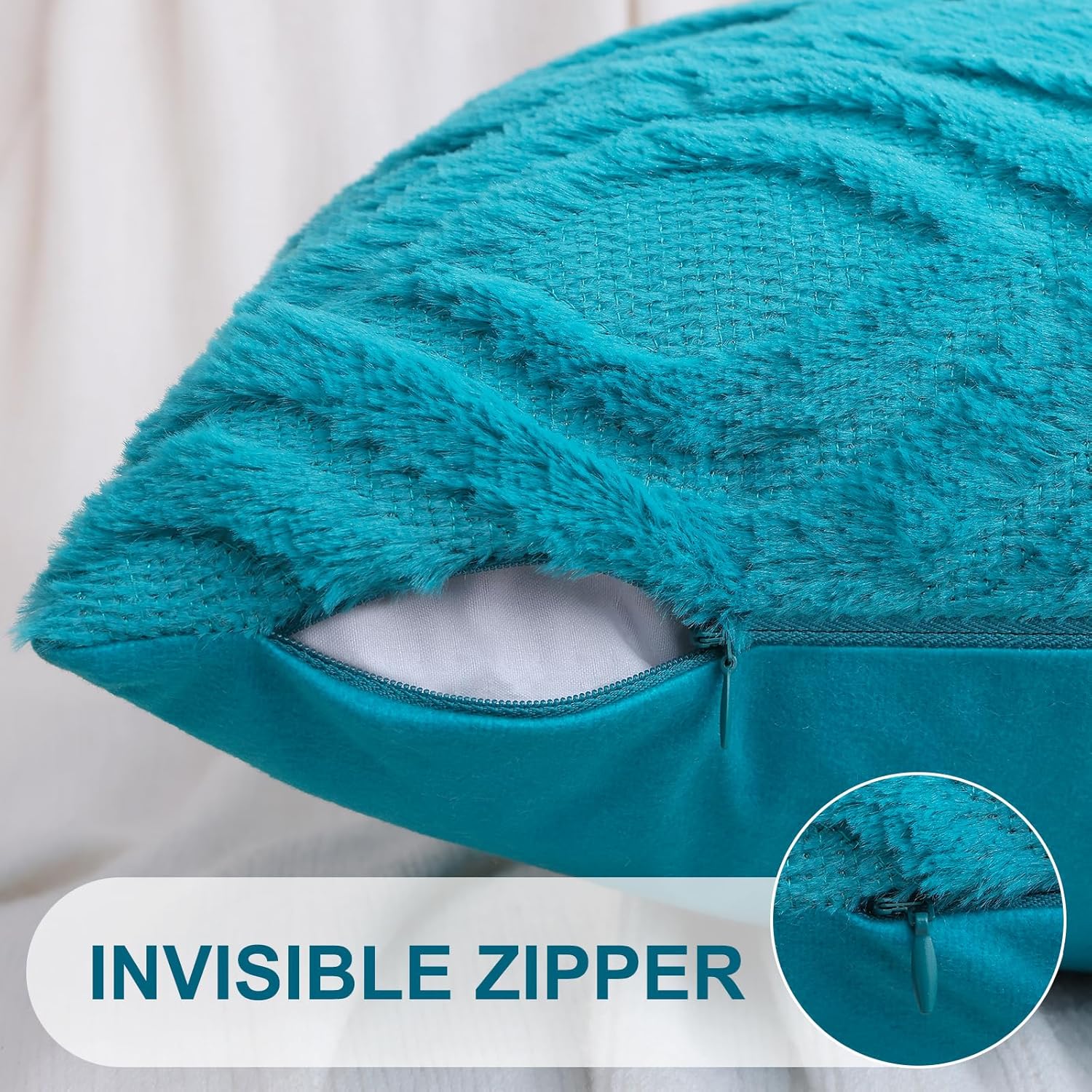 decorUhome Fall Throw Pillow Covers 26x26 Inch Set of 2, Soft Plush Decorative Faux Fur Teal Solid Couch Pillow Covers, Accent Farmhouse Neutral Square Euro Pillow Cases for Sofa Bed Living Room