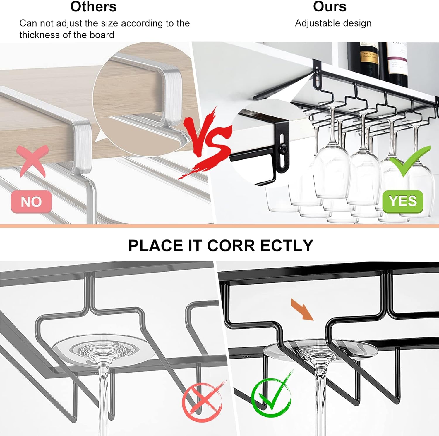 • 【Space Saving】Compact wine glass rack can be hang under any kitchen cabinets, save so space while displaying your glasses! Adds elegance taste to your home or bar's decor, as well as a best gift for wine lovers.