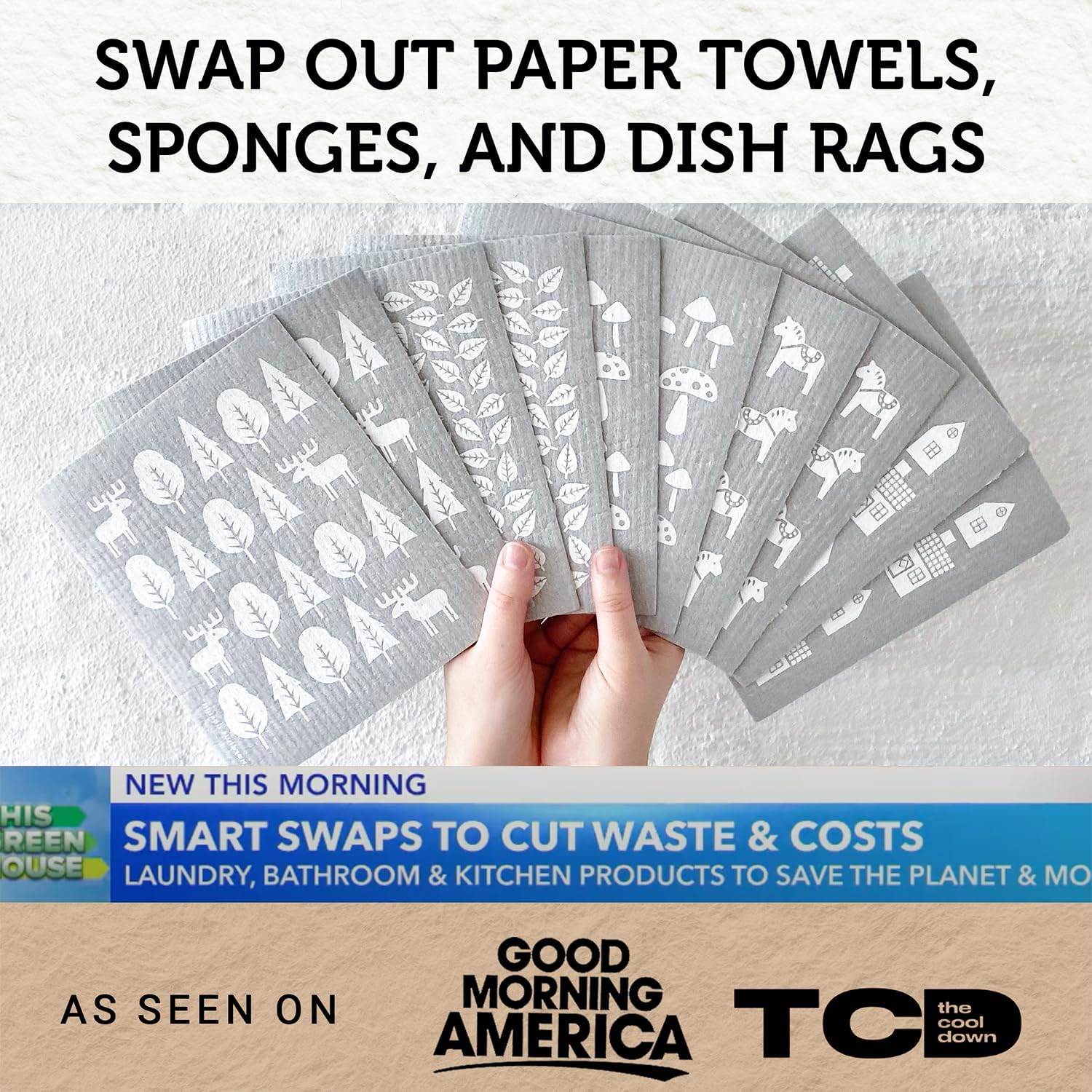 • Replace wasteful paper towels, smelly sponges, and flimsy dish rags with game changing reusable Swedish dishcloths that have been used in nearly every household in Sweden since 1949 and have become a global phenomenon! They are reusable, made of natural raw natural materials, and are quick drying, which make them odor resistant. Ten dish cloths replace 150+ rolls of paper towels and each last many months (or even years when rinsed and washed regularly). Give them a try and you will be hooked!
