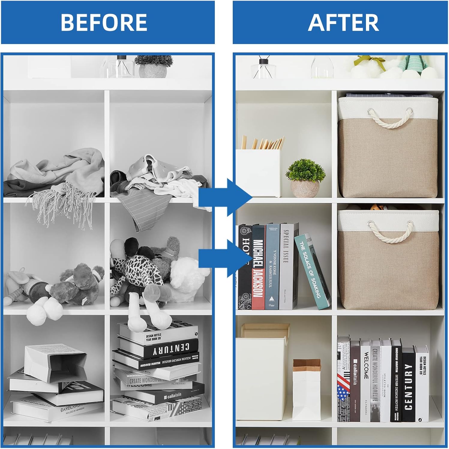 • EASY to CARRY: The cloth basket comes with 2 sturdy rope handles for easy access and for portability. Soft handles that add a classic touch, and make these closet baskets are sturdy and easy to grab and make it easy to carry or pull off and out of shelves