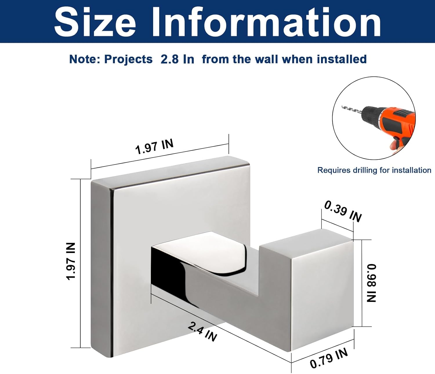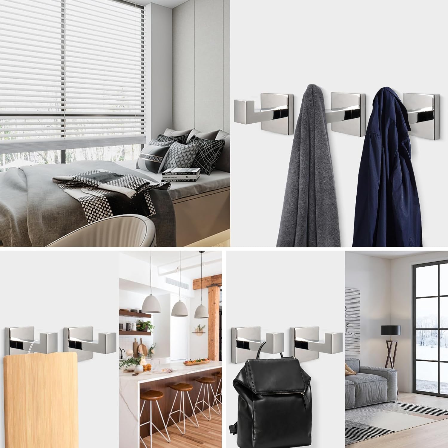 NearMoon Bath Towel Hooks -SUS304 Stainless Steel Square Clothes Robe Hooks Hanger, Heavy Duty Coat Hooks for Bathroom Livingroom Hotel Kitchen Garage, Wall Mounted - 3 Pack (Chrome Finish)