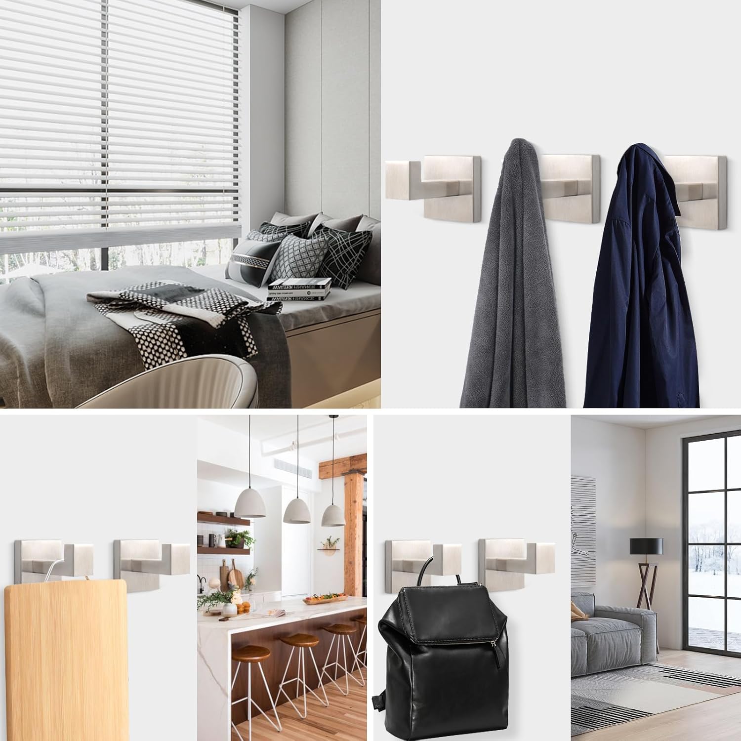 • WIDELY APPLICATION: Smooth surfaces can safely hang a bathrobe, bath towel, pants and shirt, swimsuits, coats, bags, shower caddy, or other stuff; It can perfectly suit your bathroom, bedroom, living room, kitchen, outdoor shower, basement, laundry room, and office