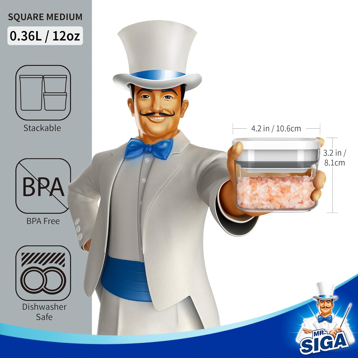 • SPACE SAVING STACKABLE DESIGN: MR.SIGA stackable food storage containers allows maximum storage of your cabinet, keep your pantry cabinets well organized and tidy. It's rectangle shape is also much easier for you to grab and carry rather than the round ones.