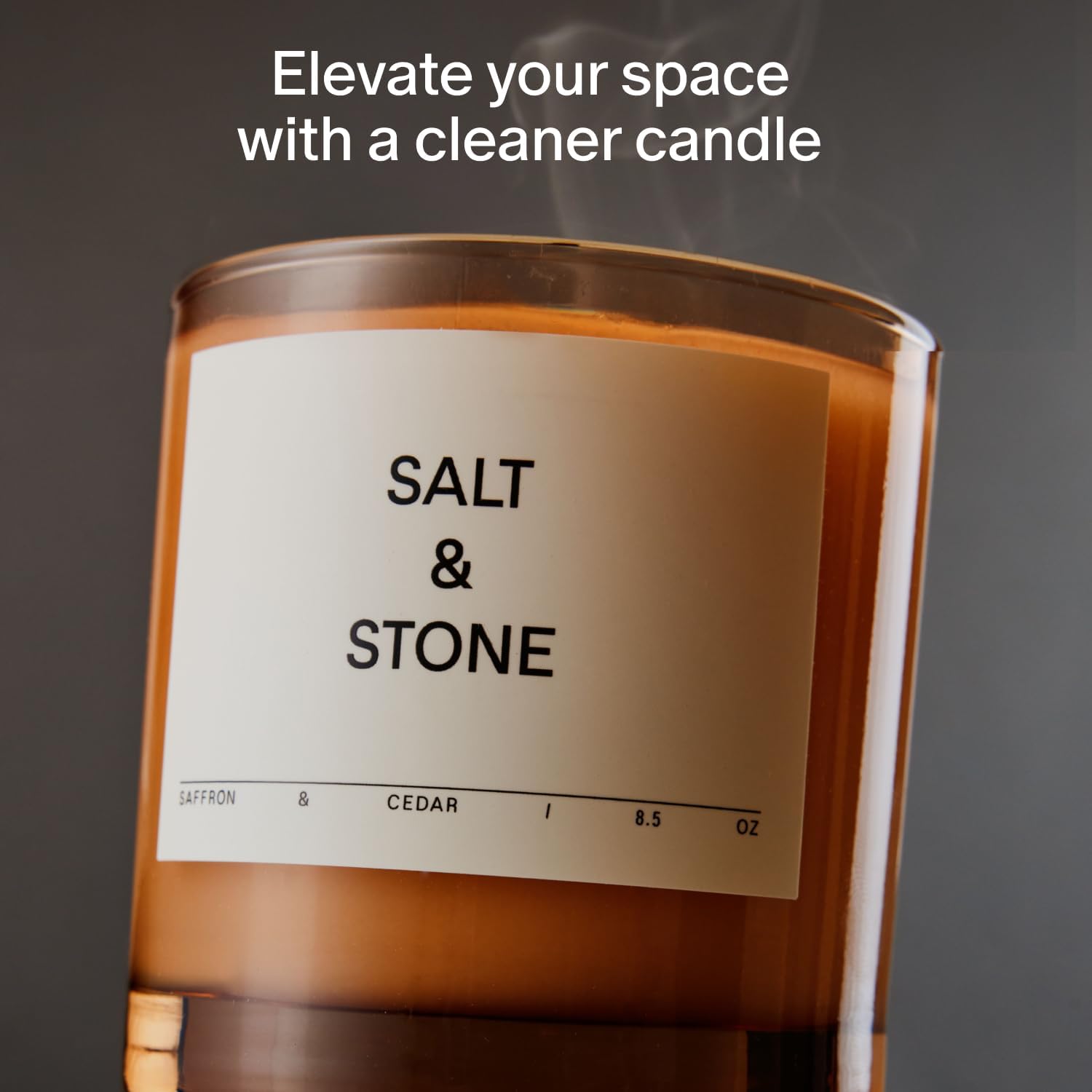SALT & STONE Scented Candle for Women & Men | Hand-Poured, Aromatic & Fragrant | Coconut & Soy Blend Wax | 100% Cotton Wick | Long-Lasting 50 Hour Burn Time (8.5 oz) (Saffron & Cedar)