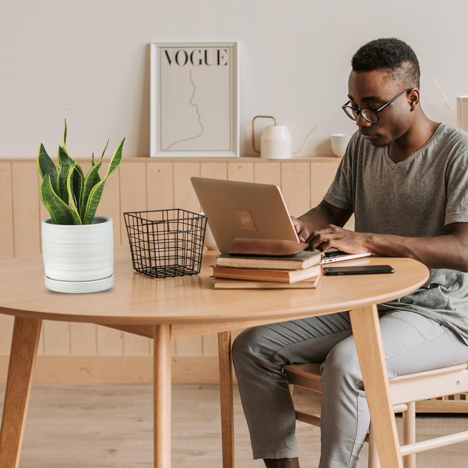 6 Inch Plant Pots, Ceramic Planter Pot with Drainage Hole & Saucer, Indoor/Outdoor Cylinder Round Planter Pot, Matte White