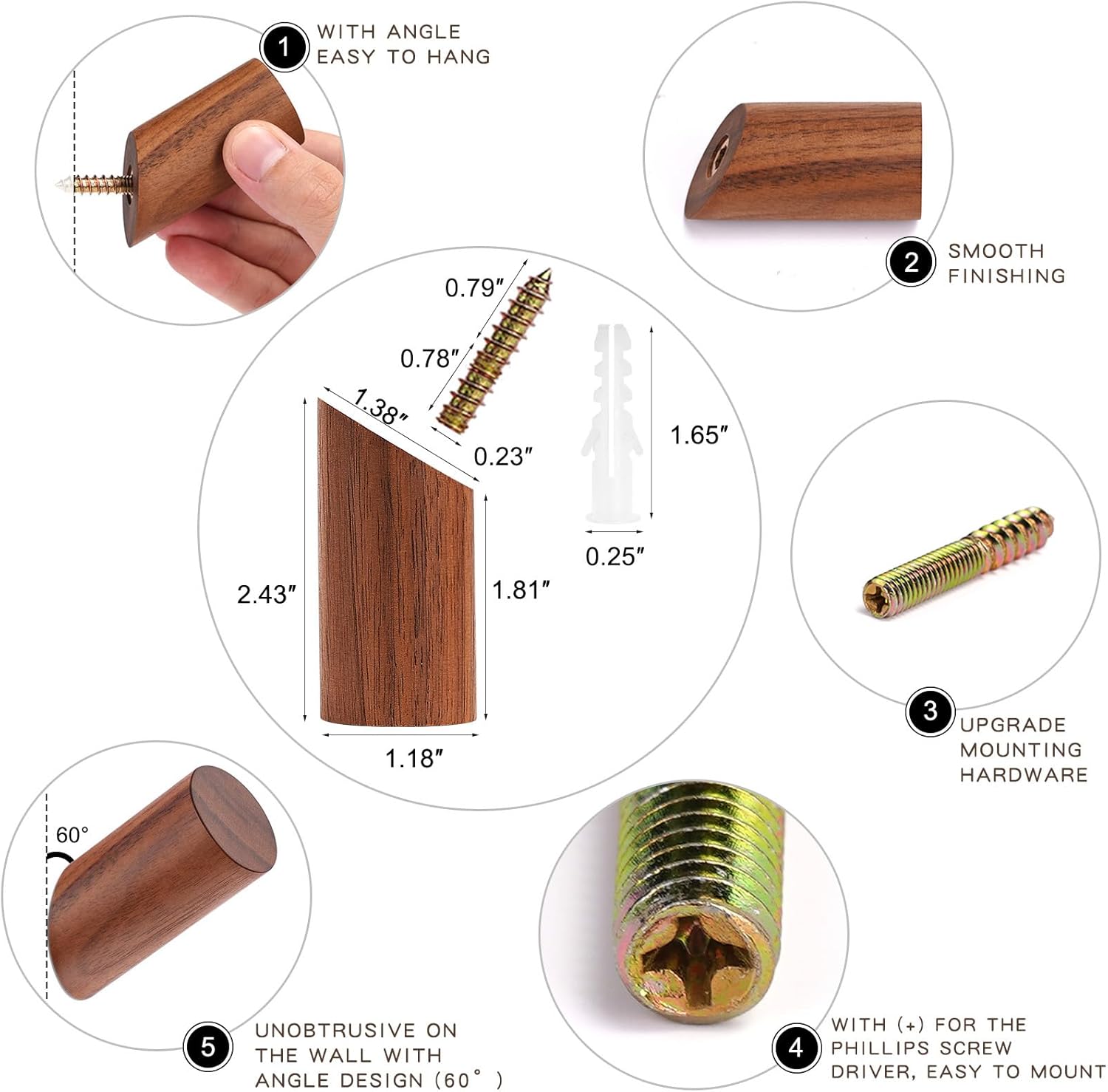 • NATURAL WOOD HOOKS - 100% walnut wood, gives a really nice tone to our wall hooks. Handcrafted from real wood, and smooth finishing with natural wood oil, healthy and for long lasting use. Simple - clean – modern, gives a beautiful alternative to the normal wall coat rack