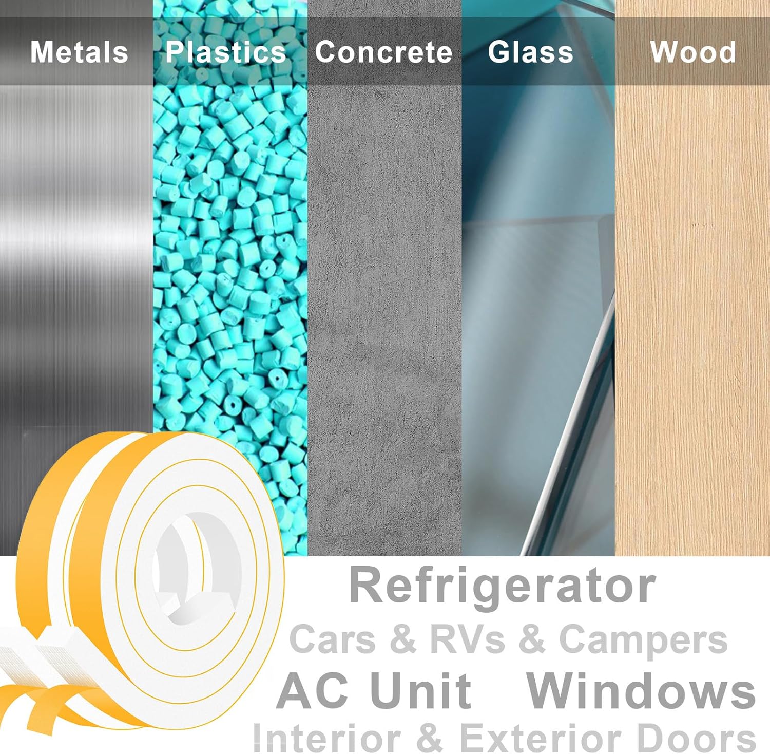 • 🟠WIDE APPLICATION-Trisiki's weather stripping for door frame is a tough, durable self-stick tape with minimal compression and can help prevent rattles, vibrations and squeaks. It's widely used as a weatherstrip, or as a gasket or to cushion and stabilize major appliances, such as doors, windows, furniture, electrical cabinets, speakers, toys, handicrafts, sports equipment, vents, air conditioners, plumbing, hvac. Plus, on cars, trucks and boats