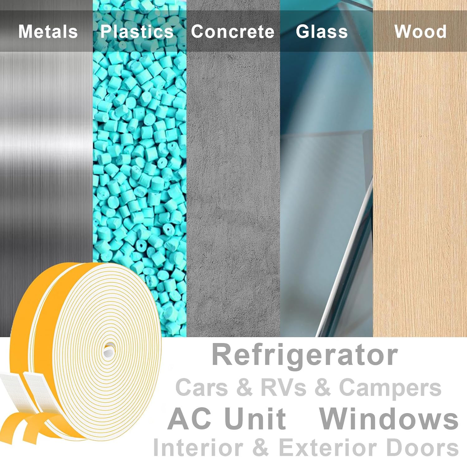 • 🟠2 ROLLS VALUE PACK-This package includes 2 rolls of 1 in x 1/8in x 16.5Ft strong adhesive weather stripping, total 33Ft in length, which means that two rolls foam tape are packed together.