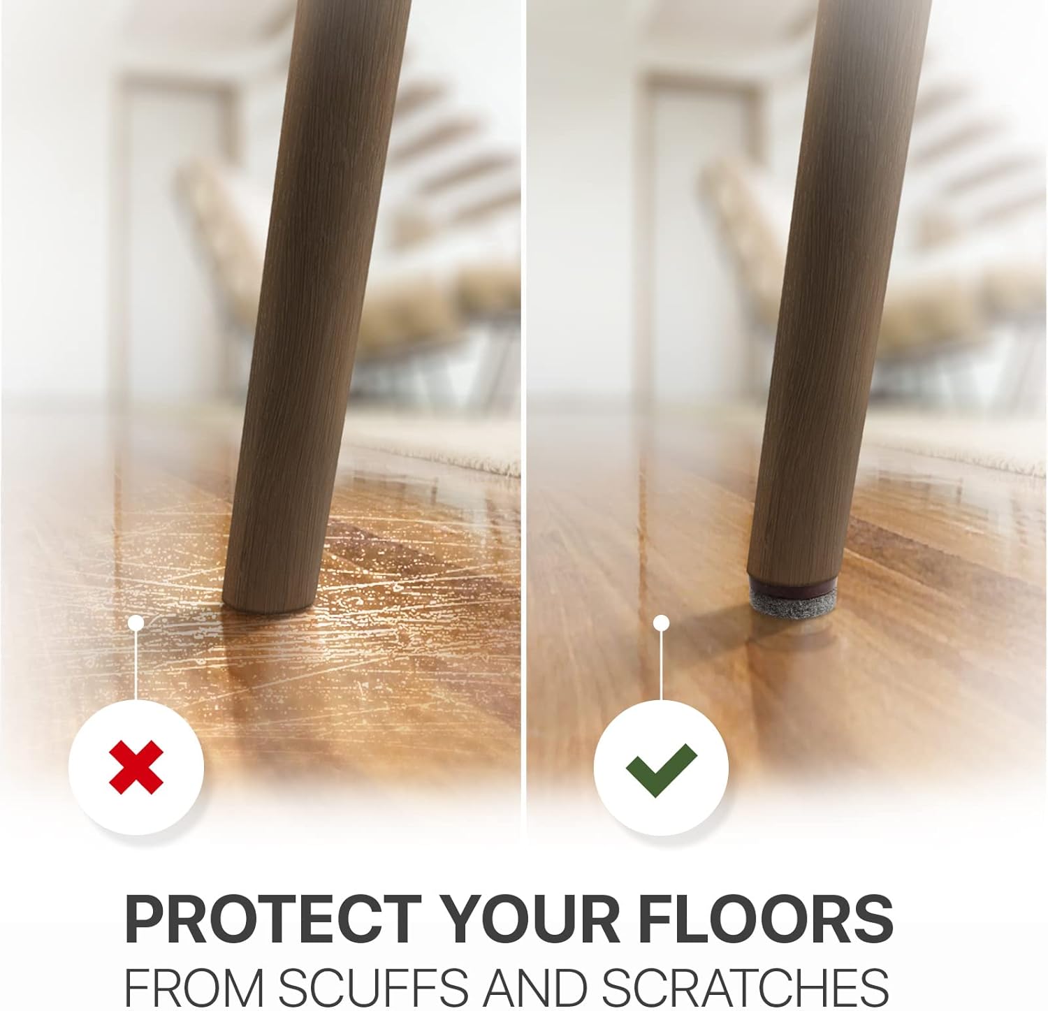 • 👉 DOES YOUR CHAIR SCRATCH THE FLOOR? DO YOU WANT TO GET RID OF THE ANNOYING NOISE FROM SLIDING FURNITURE? THE SOLUTION IS FOUND! X-PROTECTOR FELT FURNITURE PADS WILL SOLVE THESE ISSUES FOR YOU!