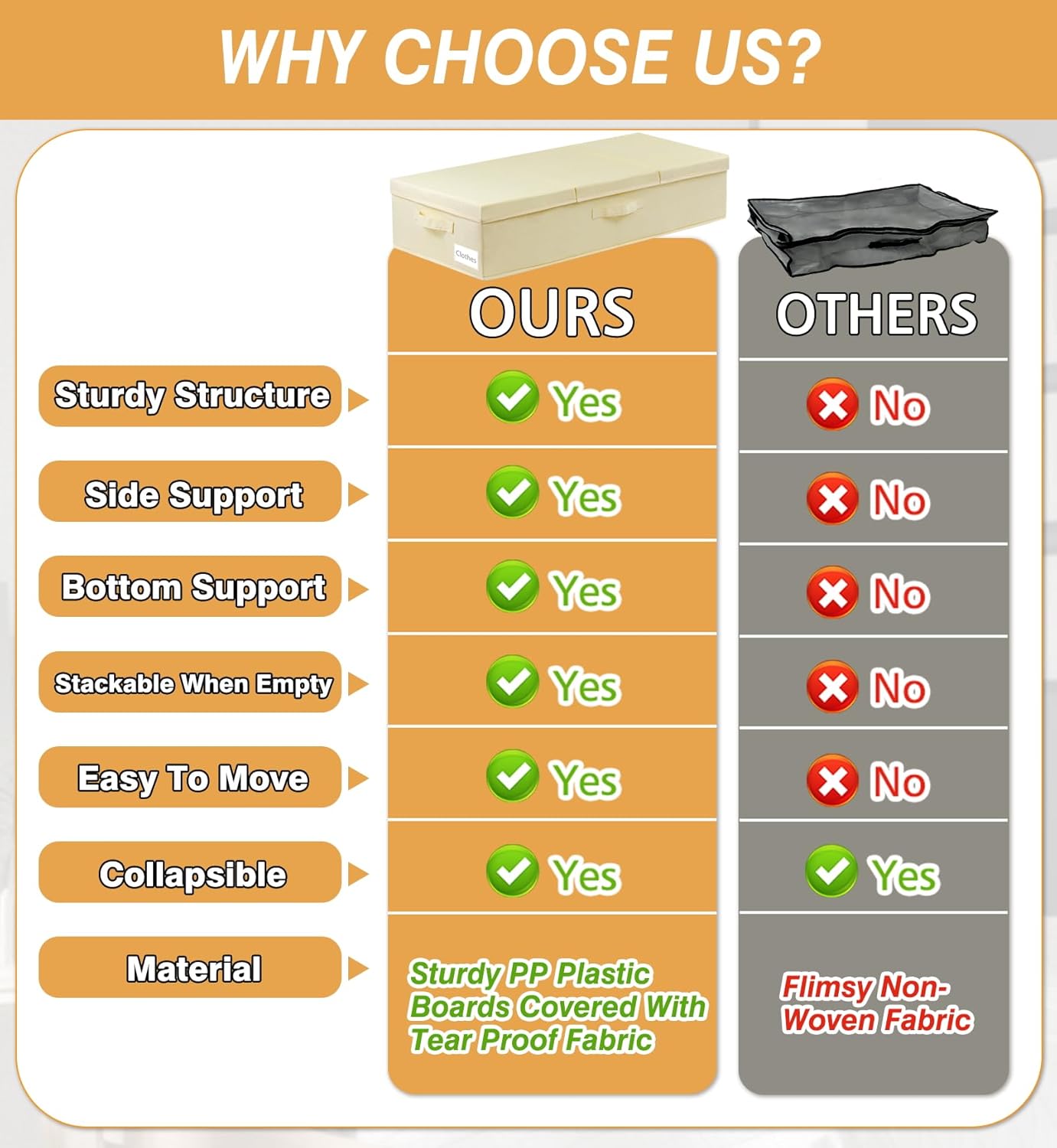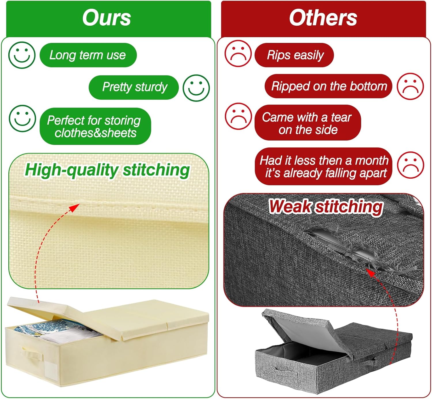 • STURDY STRUCTURE & STURDY HANDLES: 3 Reinforced sewn-in handles make it easy maneuverability and convenient for you to carry and pull out from under the bed; handy bins make excellent blanket organizers and storage; Lasts longer than underbed storage containers plastic; Keep your bedroom neat and tidy with storage bins with lids that fit your room's existing decor and theme