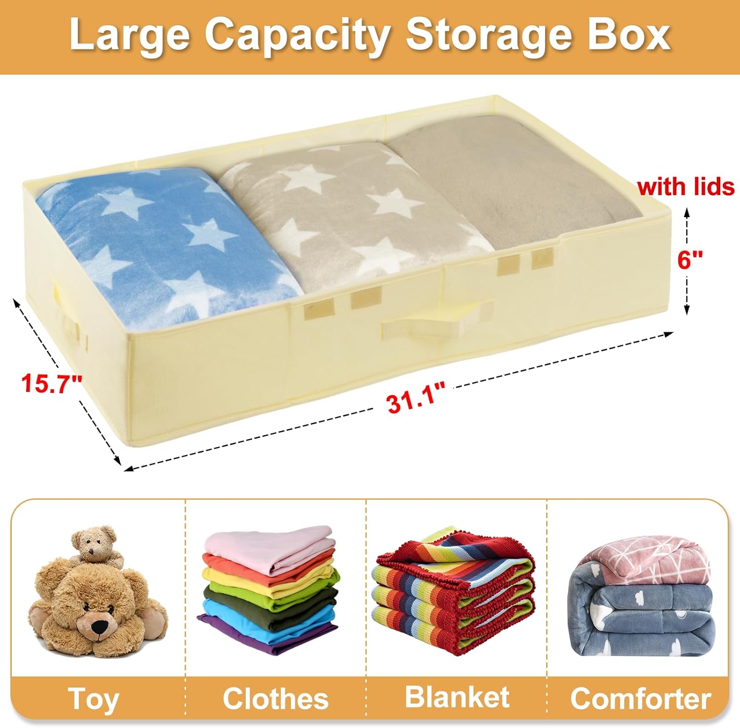 • LARGE CAPACITY UNDERBED STORAGE: Each storage bin measures 31.1*15.7*6 inch, which fits comfortably under a bed or upon a closet, under cribs and in dorms to protect and store seasonal and everyday items, holiday decorations, and memorabilia. Great for use as flat storage bins or underbed storage drawers ideal for families, bedrooms, college dormitories, closets, basements, lofts, etc