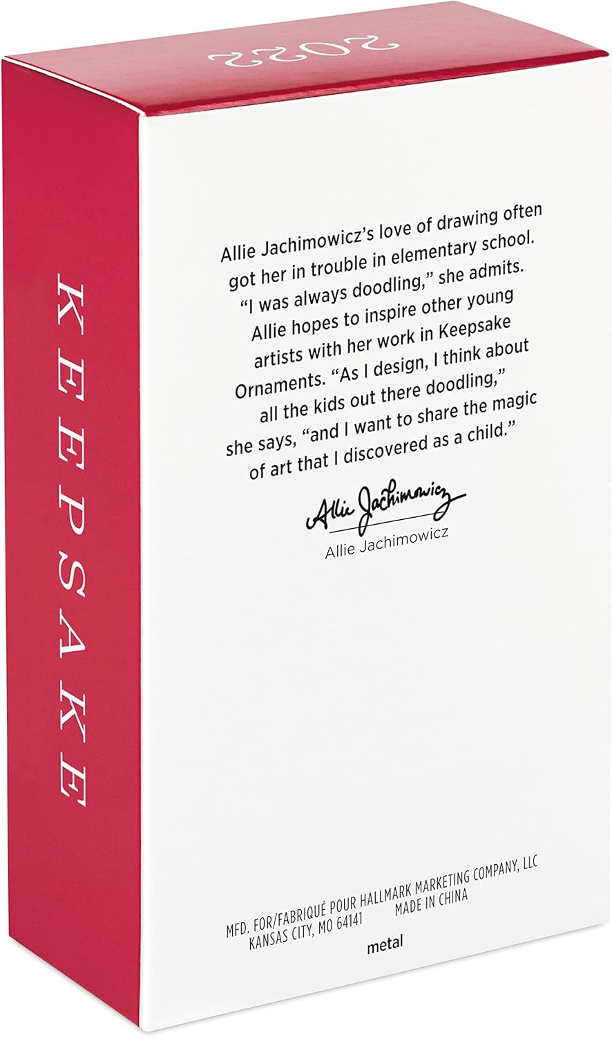 • Designed by Allie Jachimowicz, this Christmas tree ornament is packaged in a box for easy gift giving, preservation and storage.