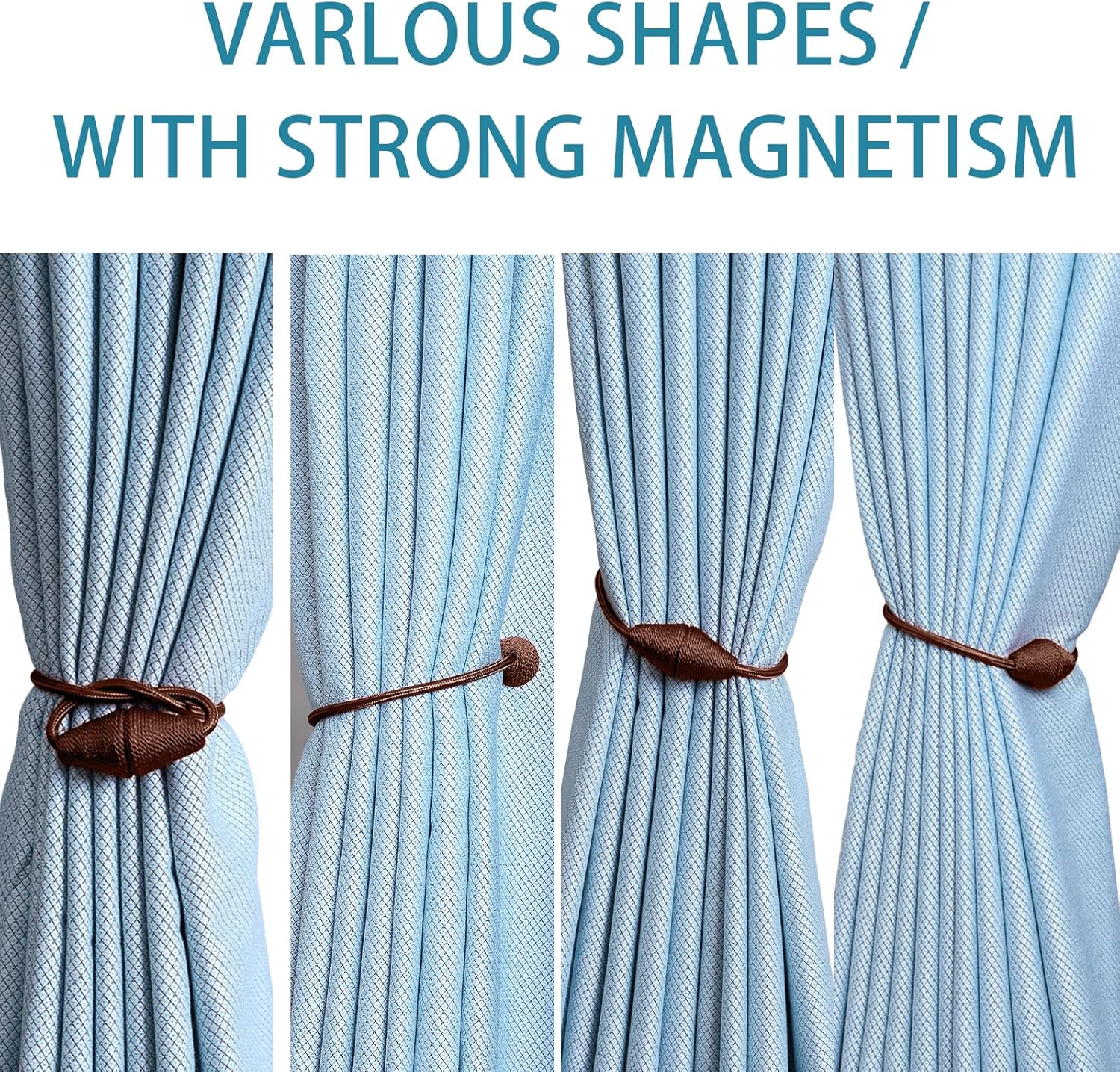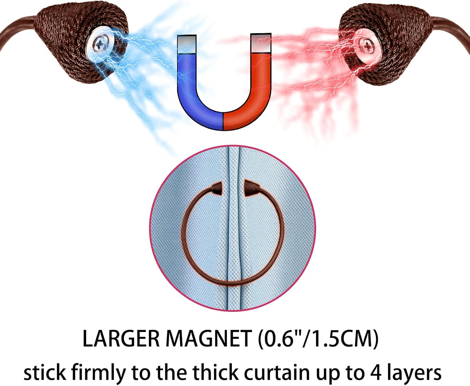 2 PCS Magnetic Curtain Tiebacks, European Style Convenient Drape Tie Backs Holdbacks for Thin or Thick Home & Office Window Draperies, No Tools Required (Dark Coffee)