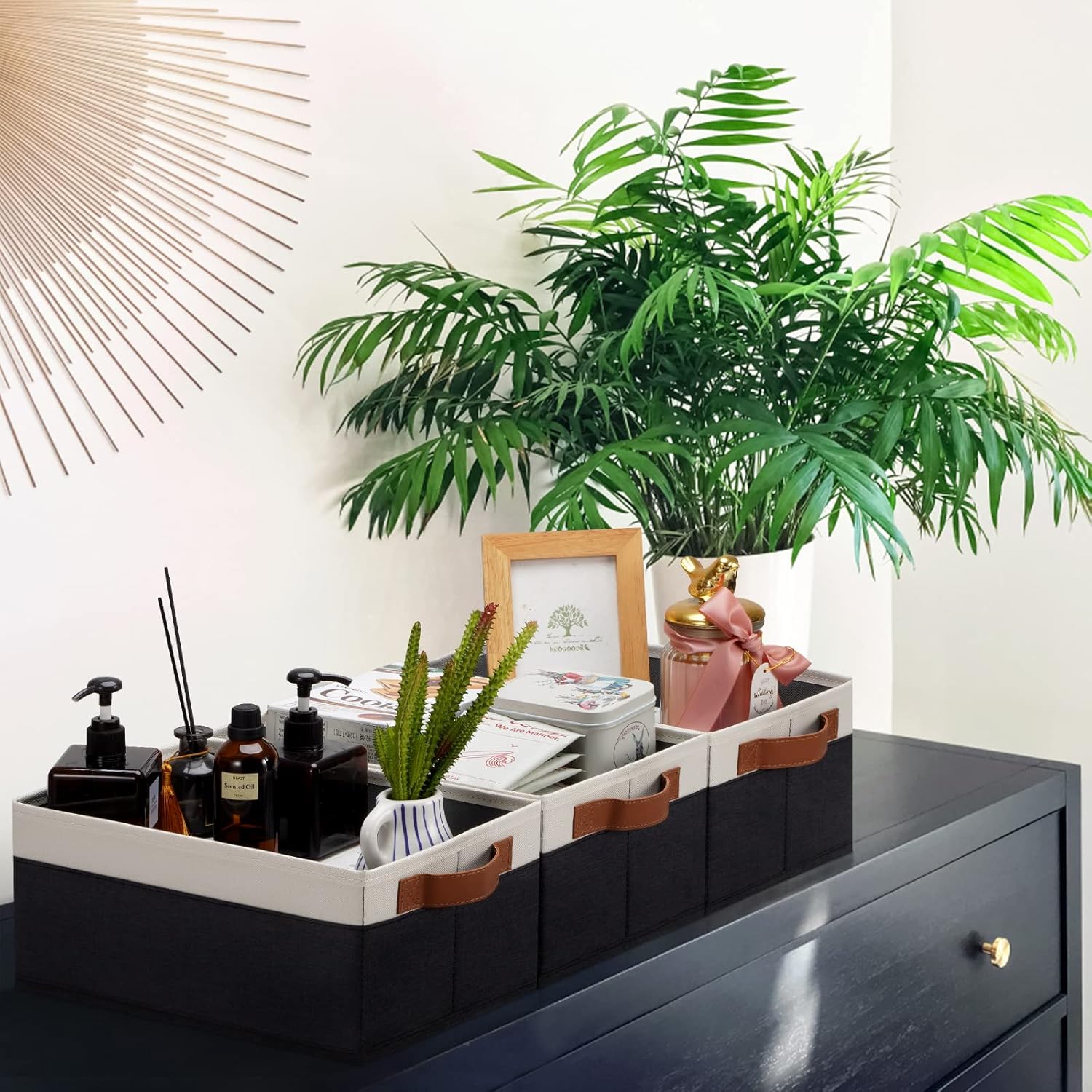 GhvyenntteS Storage Baskets for Organizing, Fabric Storage Bins with Leather H&les, Foldable Rectangular Storage Baskets for Shelves, Closets, Home, Office(Black/White, 6 Pack)11.8X7.9X5.1 in