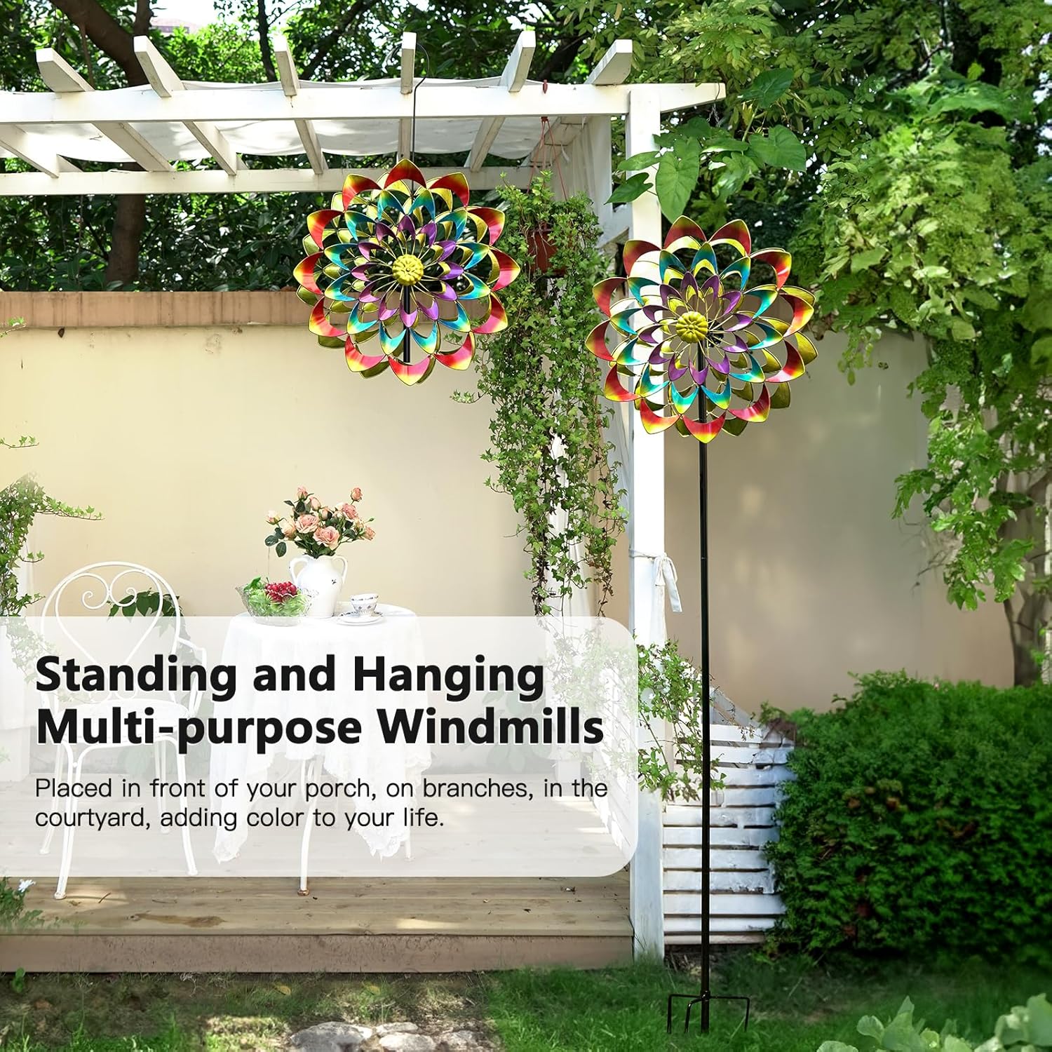 • Spinning in the Yard: It's unique design and graceful rotation create a sense of tranquility and comfort when the breeze flows through. Colorful Garden Wind Spinner making the entire yard more lively and engaging