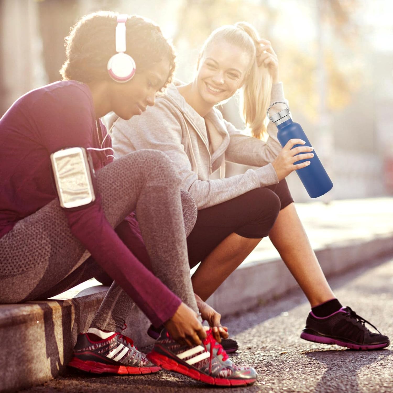 • PERFECT SIZE AND KEEP WARM FOR A LONG TIME: Our double wall insulation bottle protects temperature for up to 12 hours . The 20 oz stainless steel water bottle is perfect for everyday use and the cups fit on the bike cup holder and inside the backpack for your hiking, biking, beach, camping and fitness