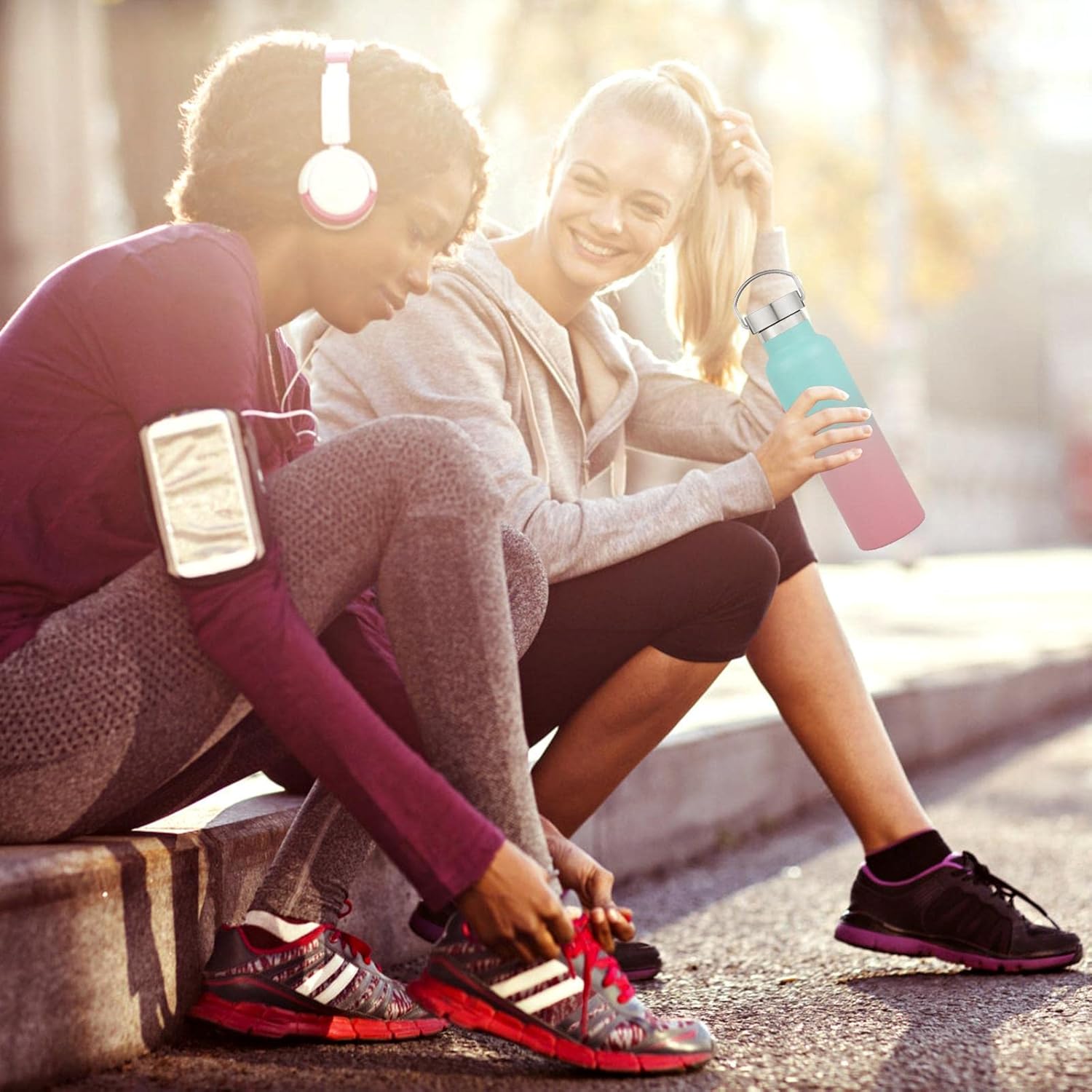 Neihepal 20 oz Insulated Water Bottles Bulk 4 Pack,Stainless Steel Double Wall Sport Bottle with Lid of Handle,Metal Reusable Thermoses Flask for School,Cyclists,Hikers,Gift (Green-Pink,Set of 4)