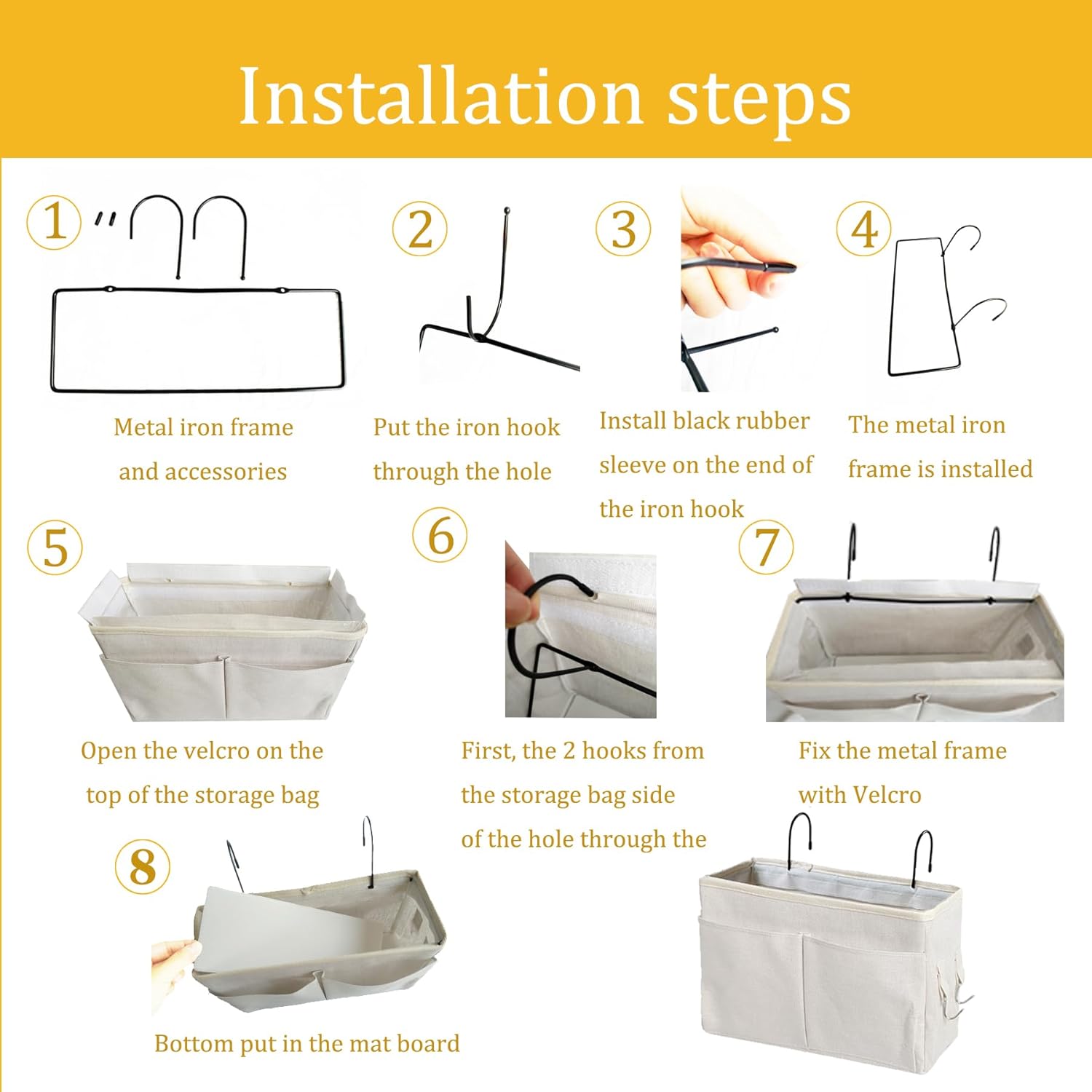 • 【Our Advantages】The top of our bedside organizer bag is designed with full wrapping around the top, the iron frame is firmly fixed in the inner side of the Velcro, which is not only more beautiful but also better stability, and equipped with a base plate, the whole is more solid, strong load-bearing capacity, not easy to be deformed.
