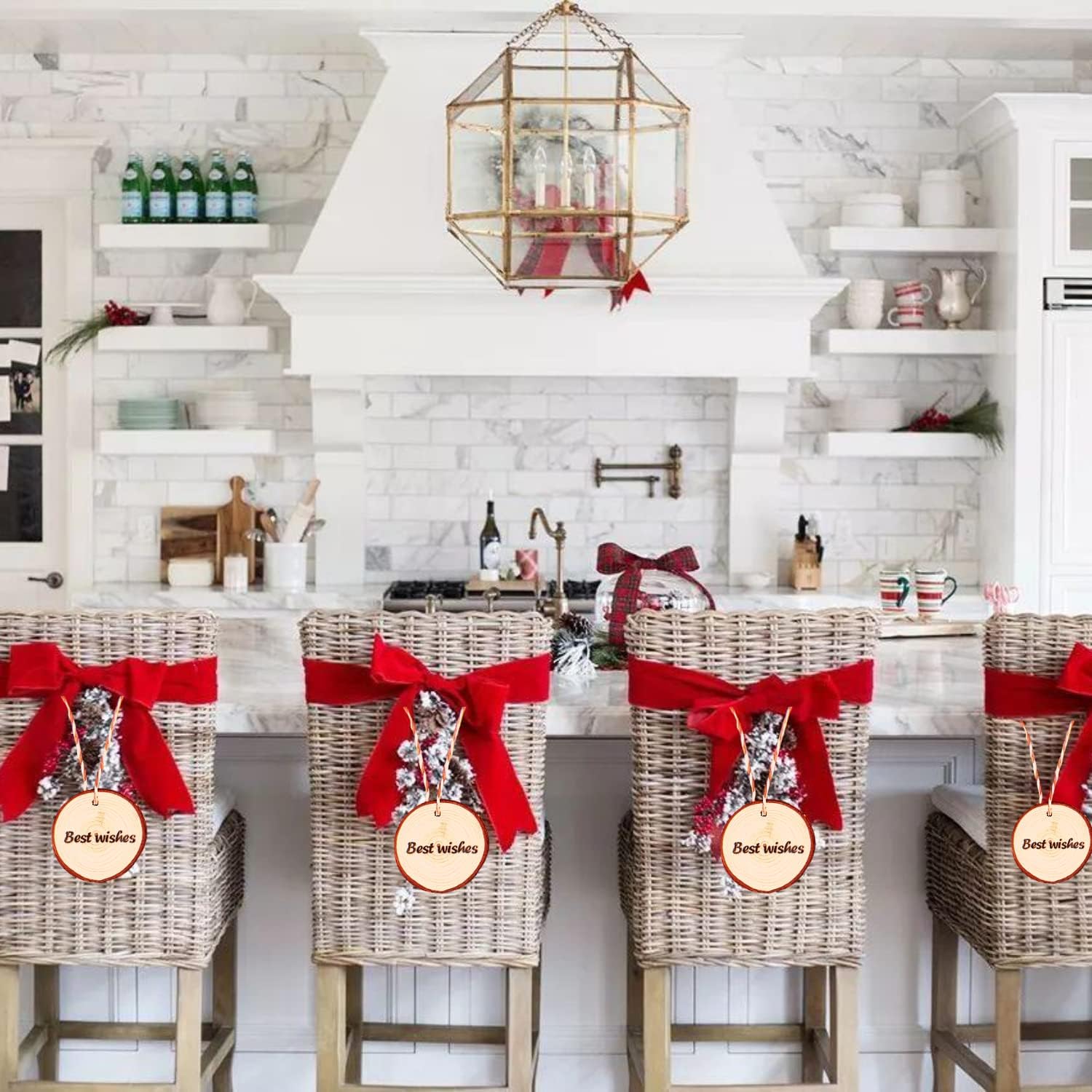 • 【Perfect for Your Needs】TICIOSH wood slices are smooth, and have polished surfaces, they are each pre-drilled with a small hole and come with a roll of jute rope and a roll of RED and white intersecting rope, 33 feet each. Makes it easy for you to hang