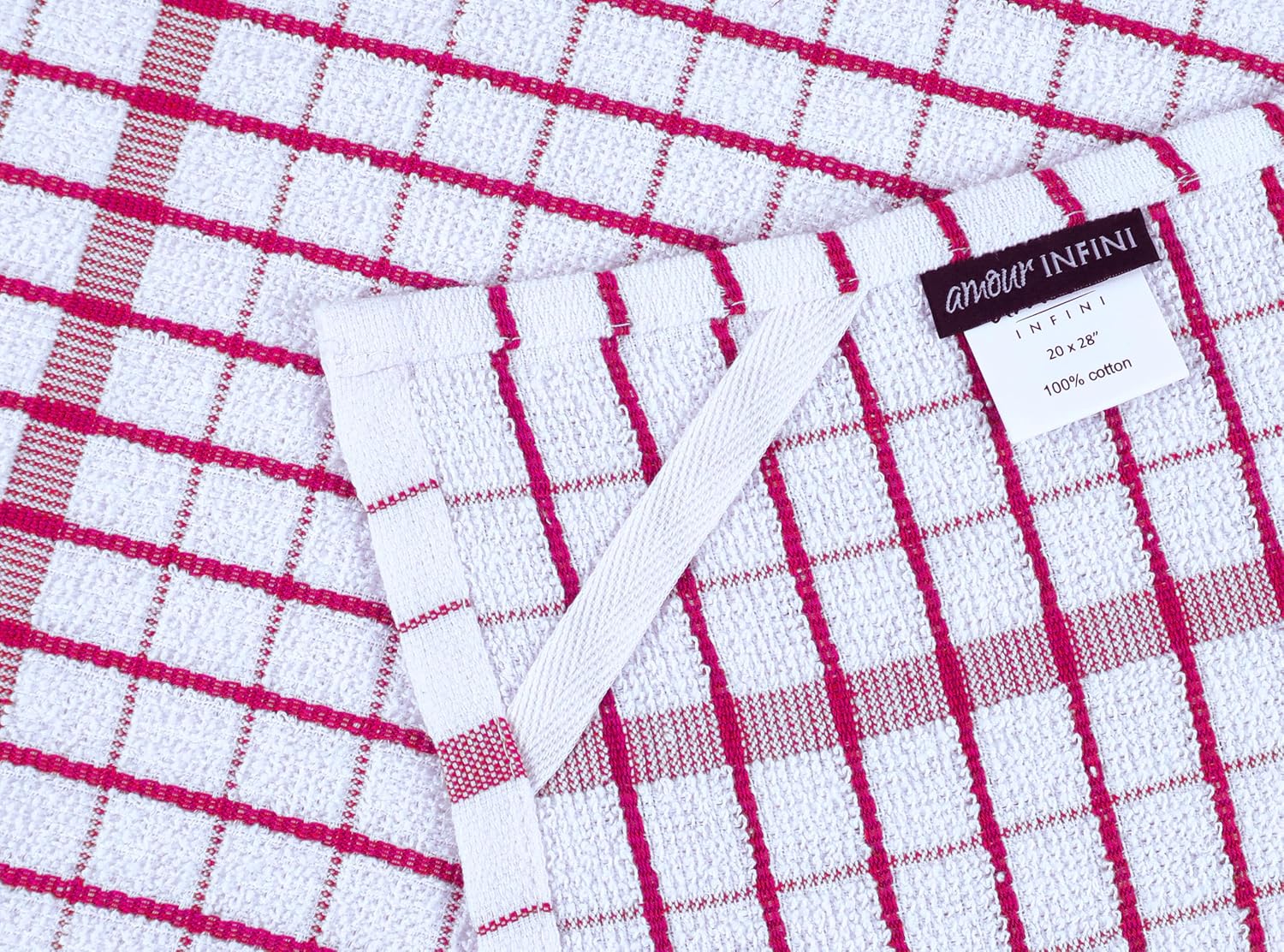 AMOUR INFINI Kitchen Towels Set of 4 - Highly Absorbent, Super Soft Terry Cotton 20x28 Inch Dish Towels with Hanging Loop - Hand & Tea Towels for Cleaning & Drying Dishes (Pink)
