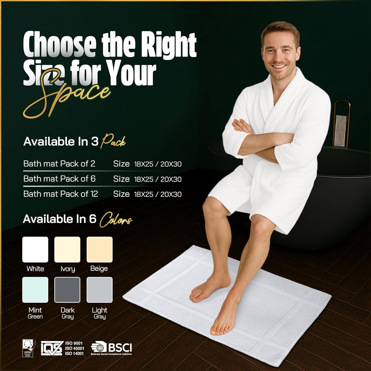 • 6-Pack Value Set – Large 20x30” Size Includes six generously sized 20x30 inch bathroom mats, ideal for home, guest, or spa use. A must-have for households needing absorbent and stylish cotton bath mats.