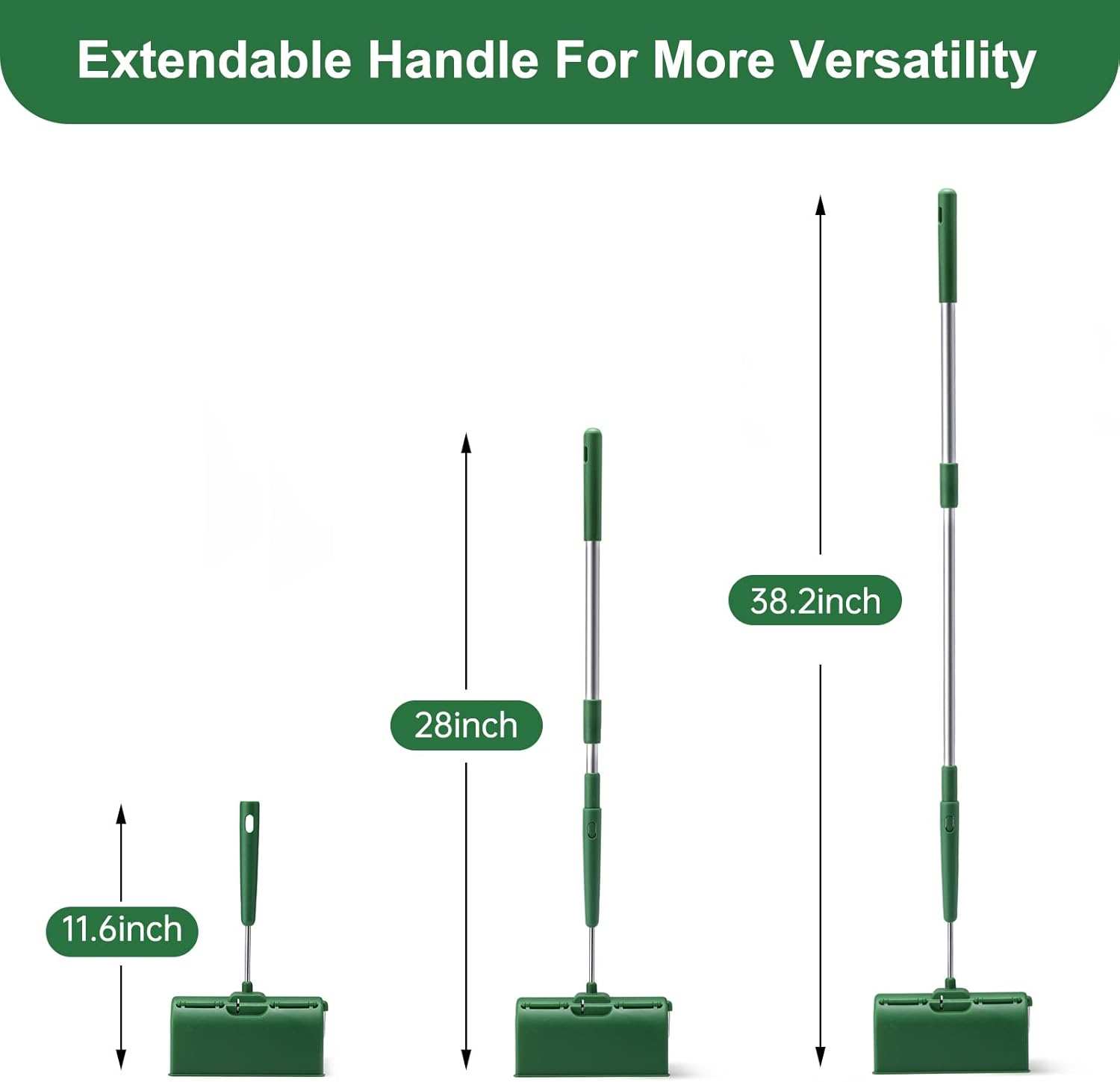 • FEDICELLY FLOOR LINT ROLLER WITH EXTENDABLE HANDLE: Giant lint roller comes with extendable handle from 18.3-28.7 inch long for far reach(Separate handle, rollers not included). This retractable long handle can be adjusted to any suitable sizes as you need. You can use sticky floor roller standing up to clean hair from floor carpets, or you can easily reach under the sofa or bed to clean any dog & cat hair, dust, dirt.