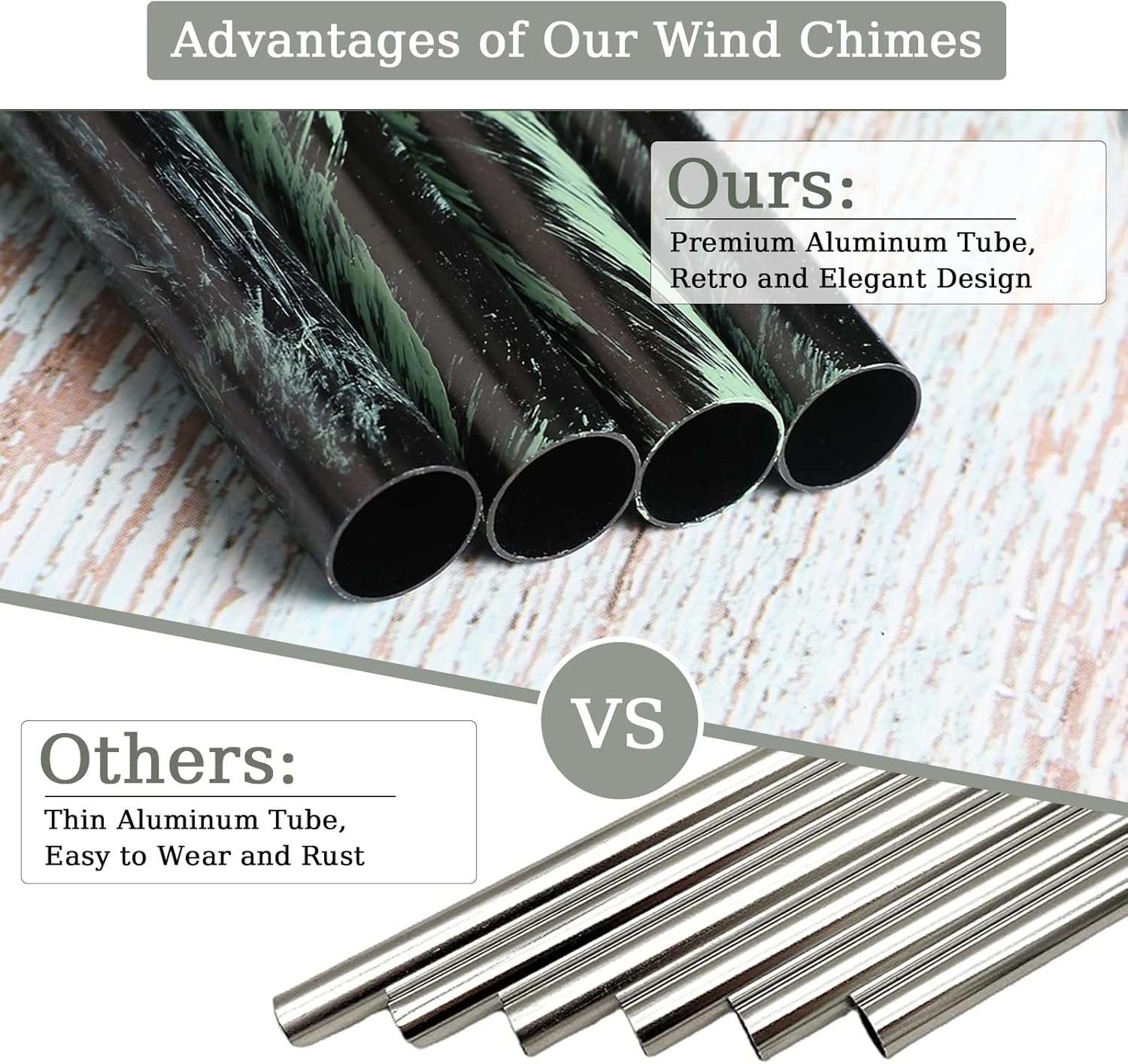 • PREMIUM QUALITY AND RUSTPROOF-- Our bronze-green butterfly wind chimes are made of high-quality aluminum and thicken nylon braided rope. The wind chimes are easy to clean and the outer coating is not easy to fade and rust. In addition, this windchime rope is not easy to tangle. Aluminum wind chimes have a longer resonance time than other windchimes, resulting in a lasting musical melody.