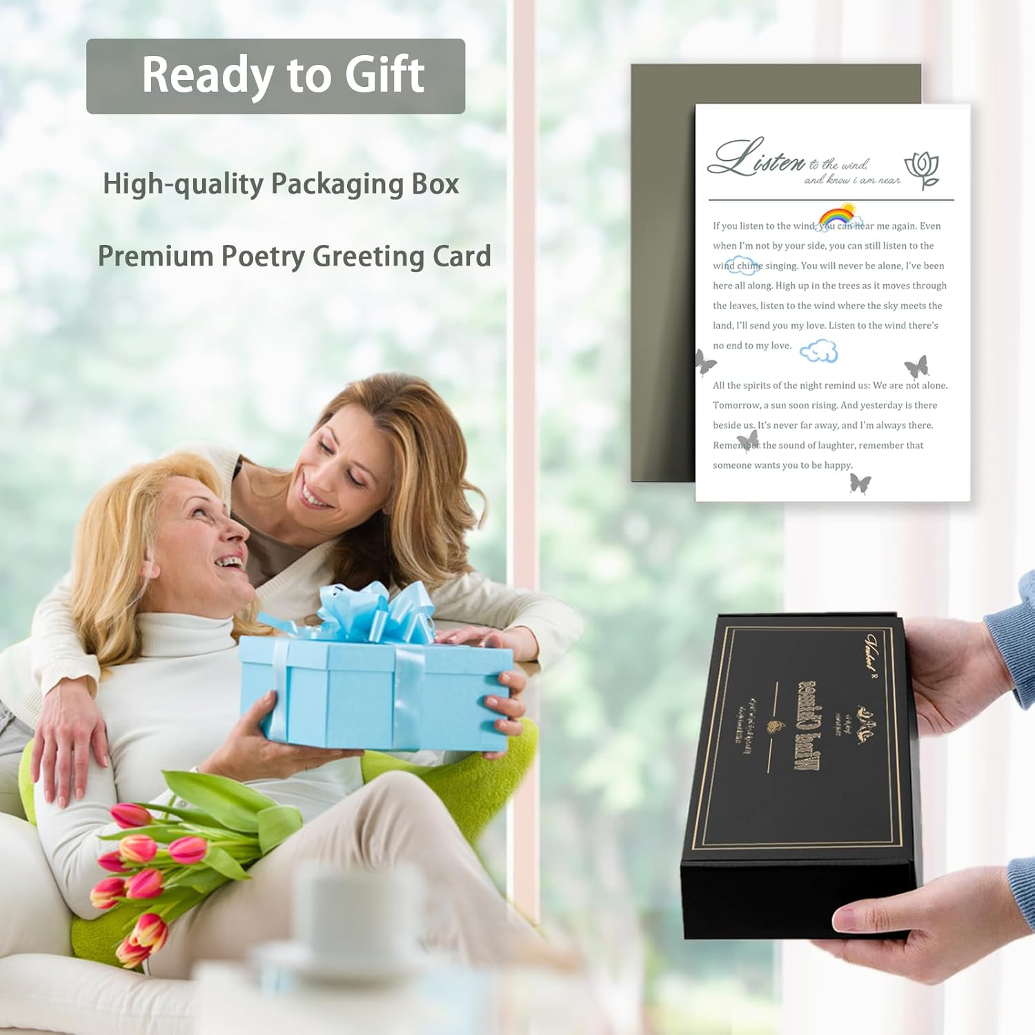 • IDEAL GIFT CHOICE -- The butterfly gifts come in beautiful boxes and come with an exquisite card, making them a great gift choice. The delicate and elegant butterfly wind chime is not only a great gift for mom, grandma, mother-in-law, women, and girls, but also suitable for most festivals and occasions, such as Mother's day, Teachers' Day, Thanksgiving, Christmas, Weddings, Birthdays, etc.