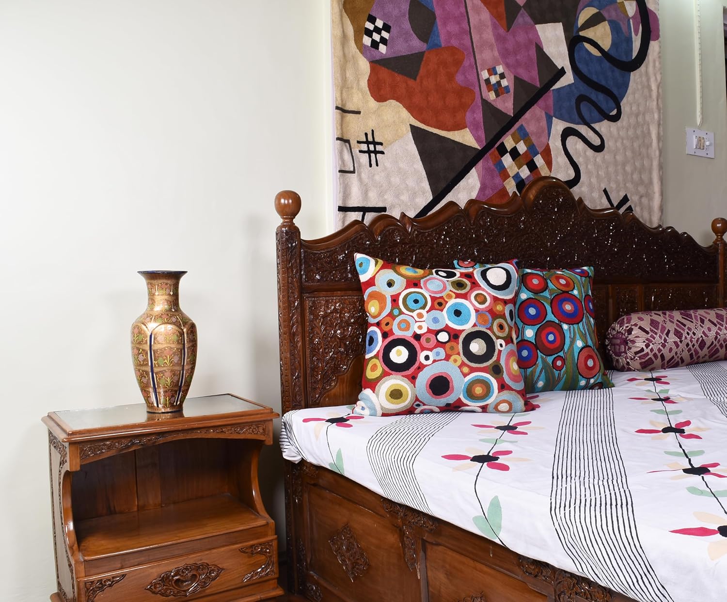• ❤ Polka Dot Throw Pillow Cover - Hand Embroidered: Indulge in the charm of our Polka Dot Throw Pillow Cover, where vibrant and delightful polka dot patterns meet the elegance of hand embroidery. These colorful decorative pillows draw their inspiration from modern art designs, and they are meticulously hand-embroidered in soft wool to perfection. When you take a closer look at these Polka Dot Throw Pillows, you'll have the chance to appreciate the incredible fine chain-stitch hand embroidery.