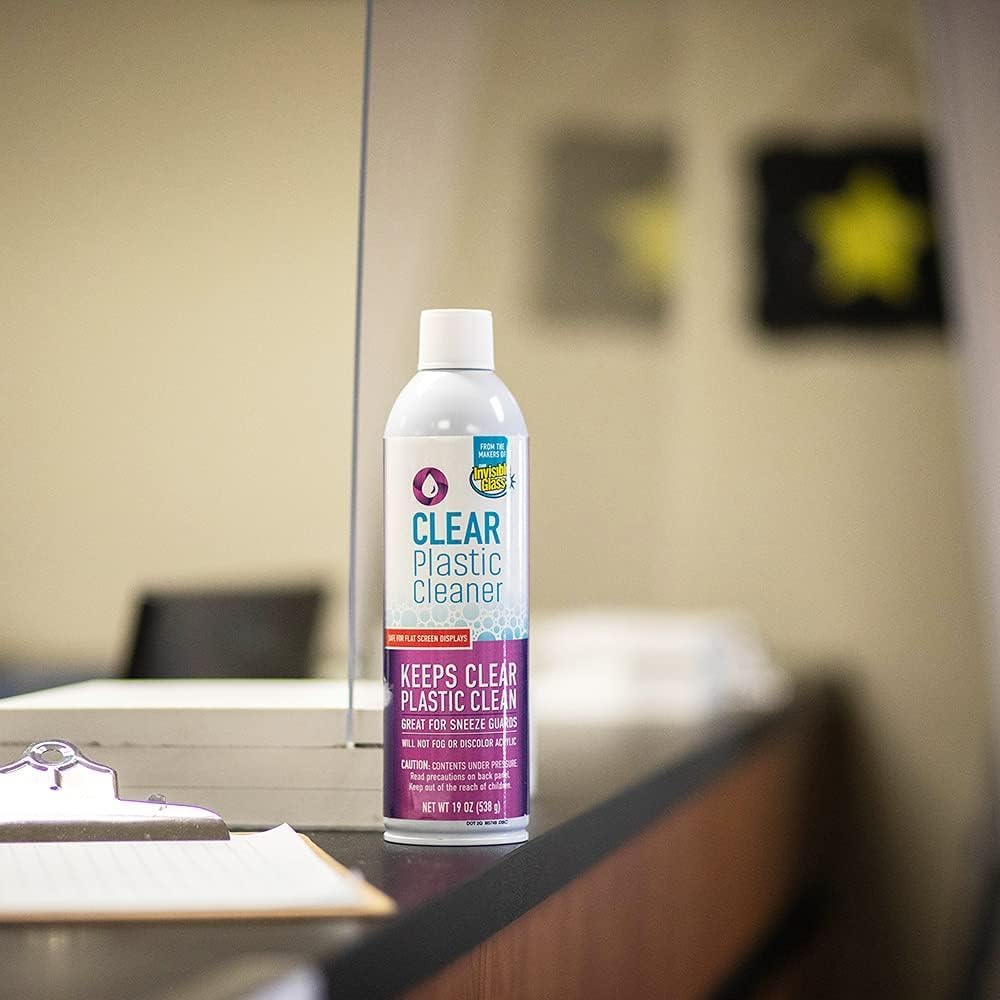• PROTECTS AND CLEANS: Invisible Glass Clear Plastic Cleaner gives transparent plastics a streak-free, clear finish and a smooth, anti-static surface that repels dust from clear plastics on electronics, appliances, eyewear, cars, trucks, RVs, aircraft, and boats. Ideal for keeping sneeze guards and face shields clean and protected!