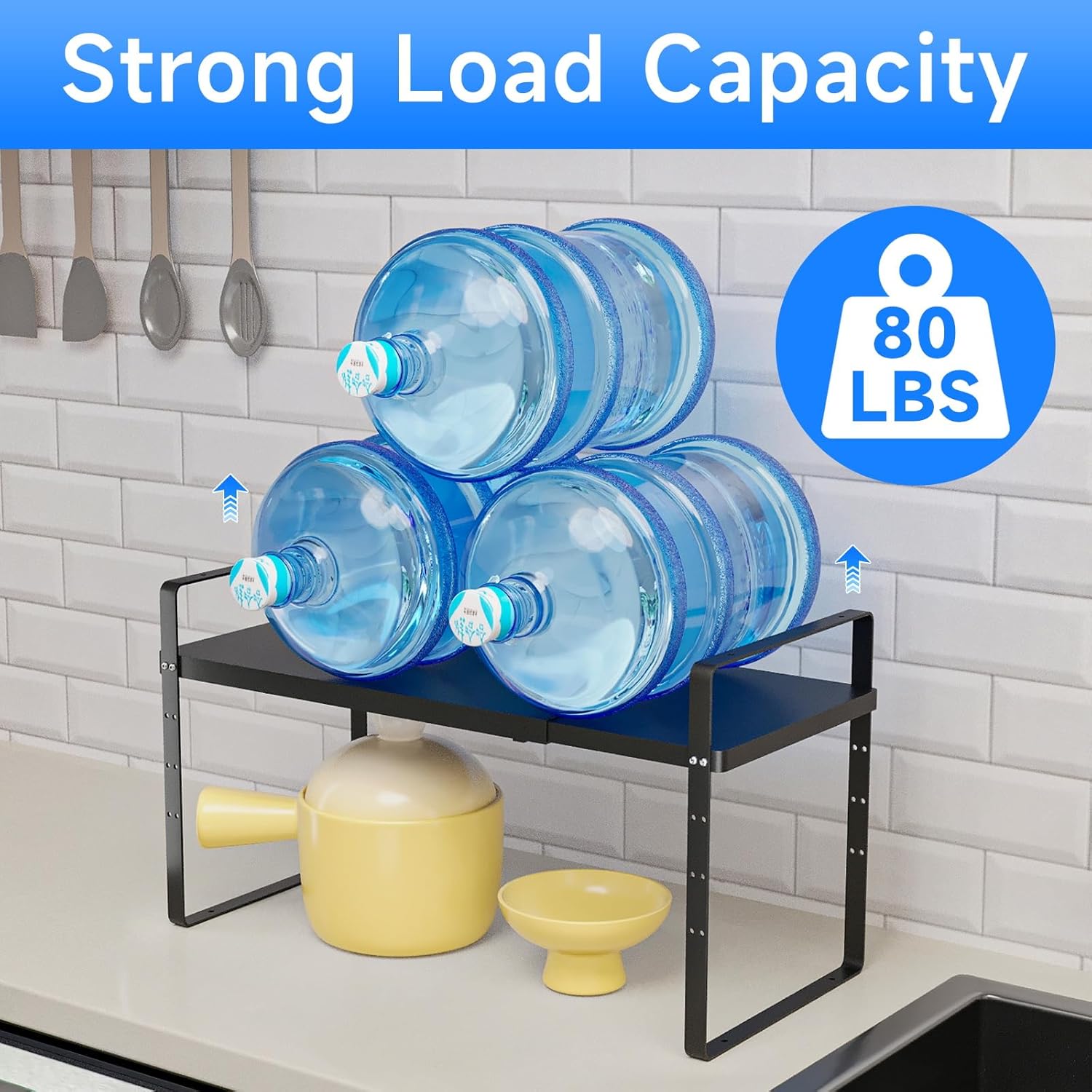 • 【Flexible & Stackable】 This cabinet shelf is expandable and stackable, allowing you to adjust the width and height to suit your needs. The width can be extended from 17 inches to 27 inches, and multiple shelves can be stacked together to create multiple levels of storage space.