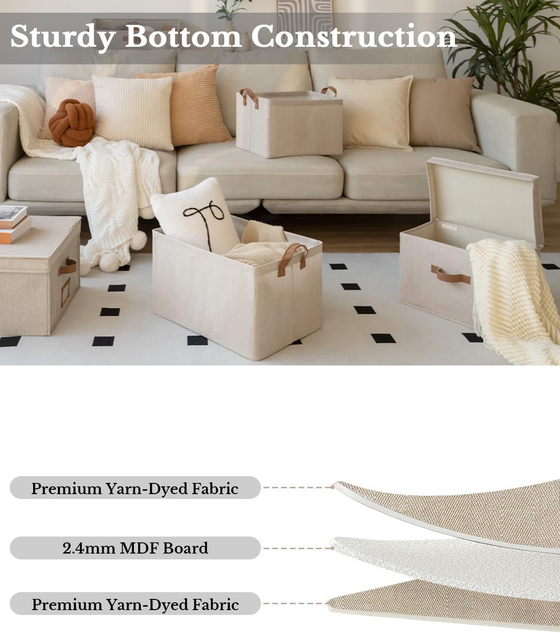 • Premium Quality: Made from high-quality fabric and reinforced with a heavy-duty MDF bottom board and a sturdy metal frame. The solid construction enables the storage bins to stand upright without support, even when empty.