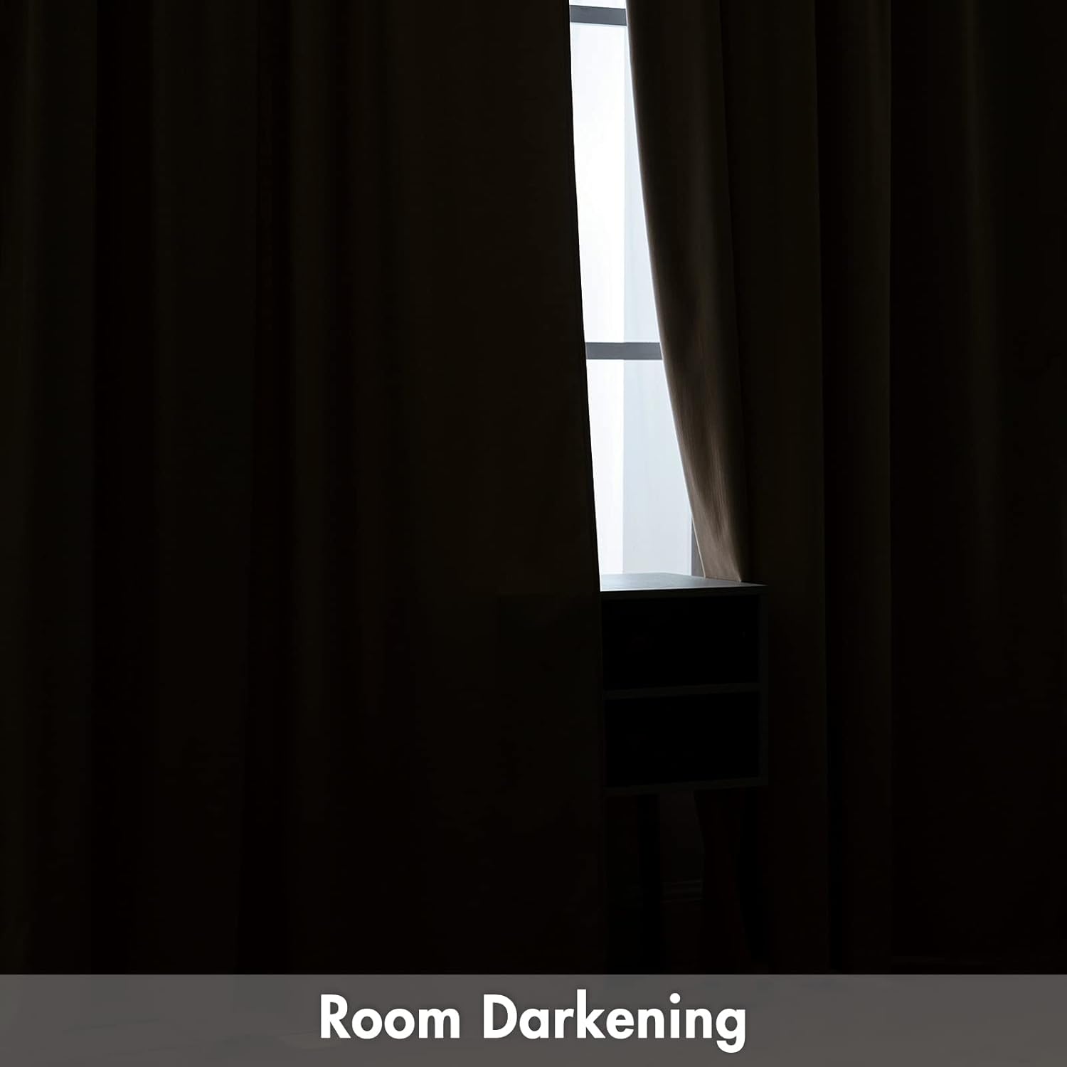 • FUNCTION: Thick and heavy blackout curtain drapes can block 60-80% of the sunlight (the darker color works better).These velvet curtains can also reduce noise,stay temperature down in summers,keep cold wind out in winters to achieve smart energy saving and provide privacy as well.