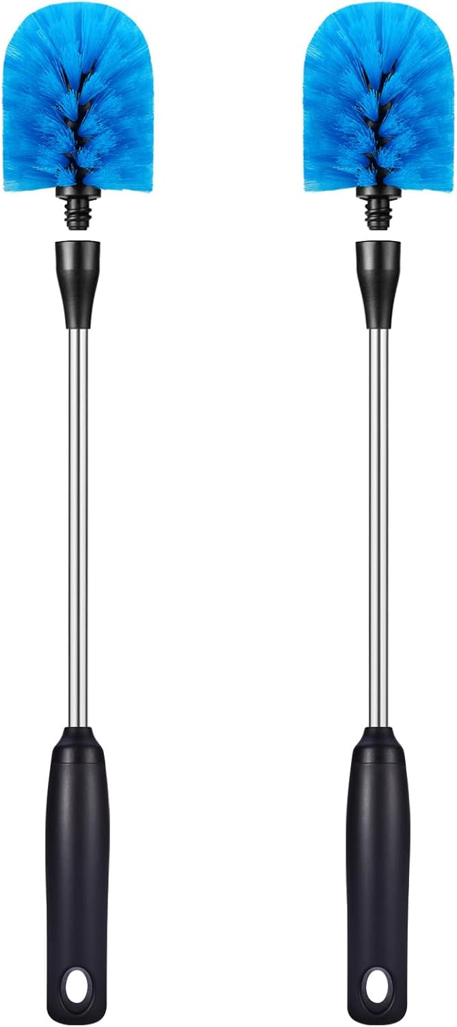Stainless Steel Bottle Brush with Replaceable Head, Long Handle Scrub Brush for Water Bottles, Glasswares, Mugs, Flasks, Tumblers, Vases, and Kitchen Sink, 2 Pack, 15 in