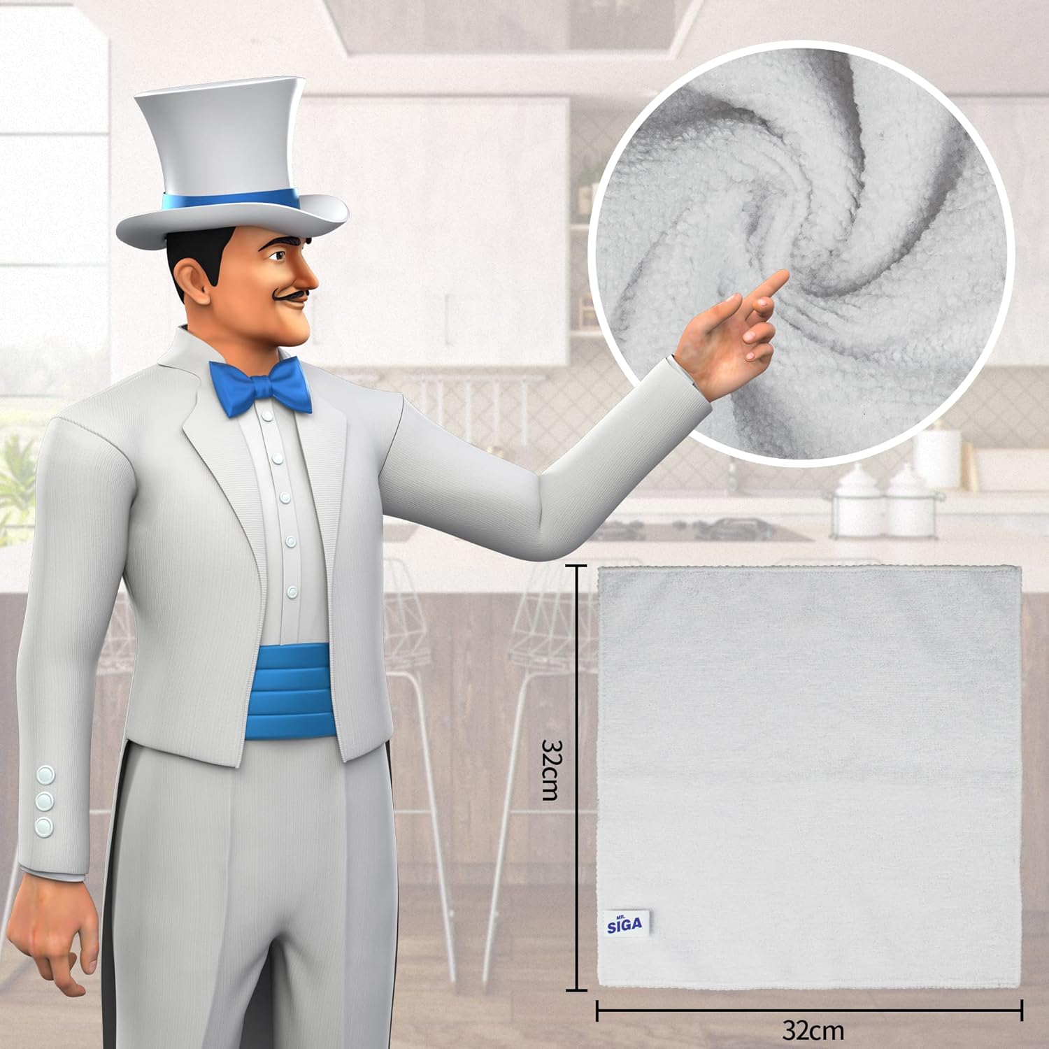 MR.SIGA Microfiber Cleaning Cloth, All-Purpose Microfiber Towels, Streak Free Cleaning Rags, Pack of 12, White, Size 32 x 32 cm(12.6 x 12.6 inch)