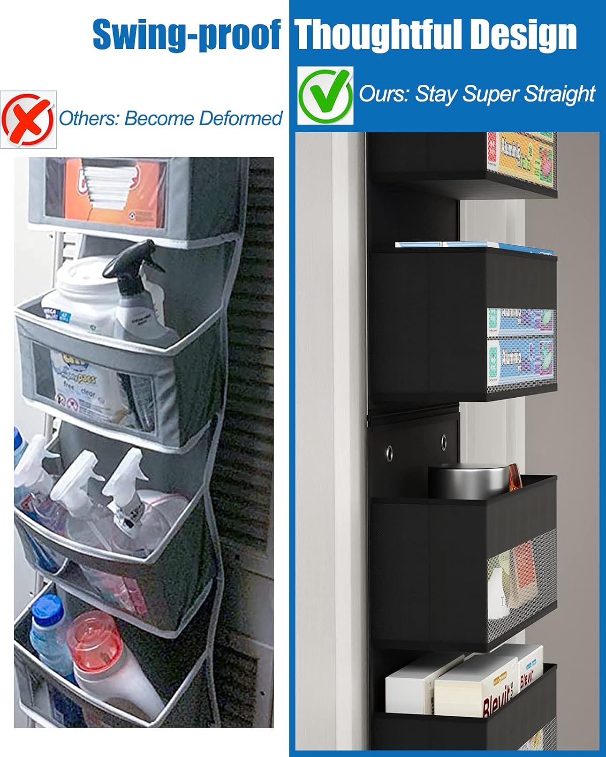 • - For All Space: You can install this over door organizer as a whole long organizer or split it into 2 short storage for bedroom, closet, baby room, bathroom, kitchen, etc