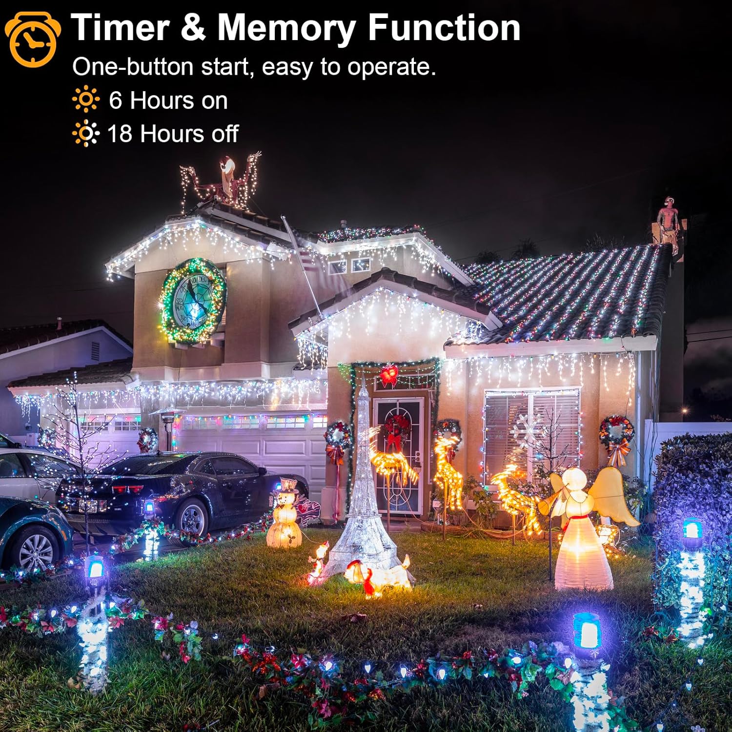 • [8 Lighting Modes&Memory Function] The icicle string lights with 8 different lighting modes: Combination, in waves, sequential, slogs, chasing/flash, slow fade, twinkle/flash, and steady on. You can set different modes by button on the power adapter. Memory function design make the twinkle lights will recover from the previous setting mode when you restart the string lights next time.