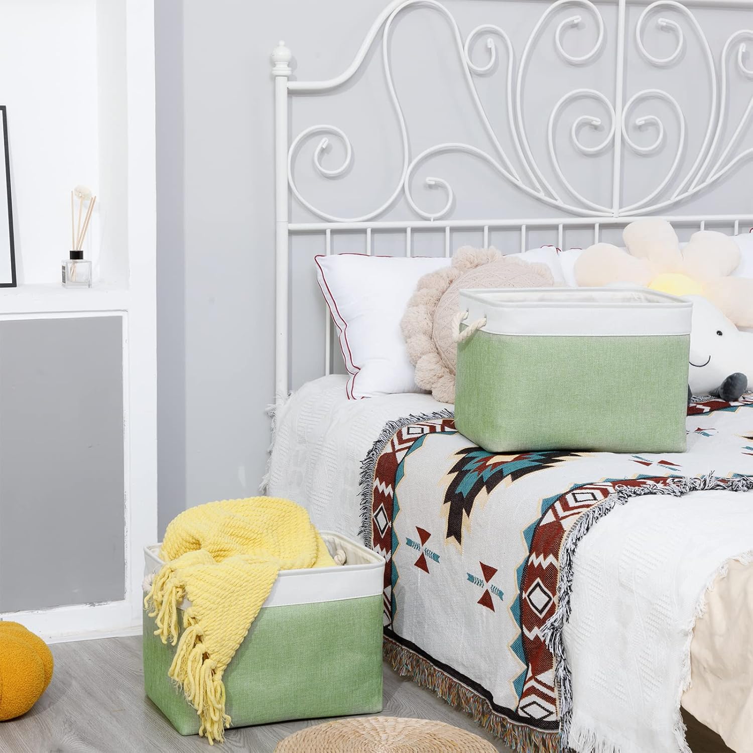 • Foldable Baskets Set: Simply fold the canvas basket down flat for space-saving storage when not in use or when needing to transport. If you mind the creases, you can use an iron to iron the creases in the basket. If you do not use an iron, the creases will slowly disappear as you store your items