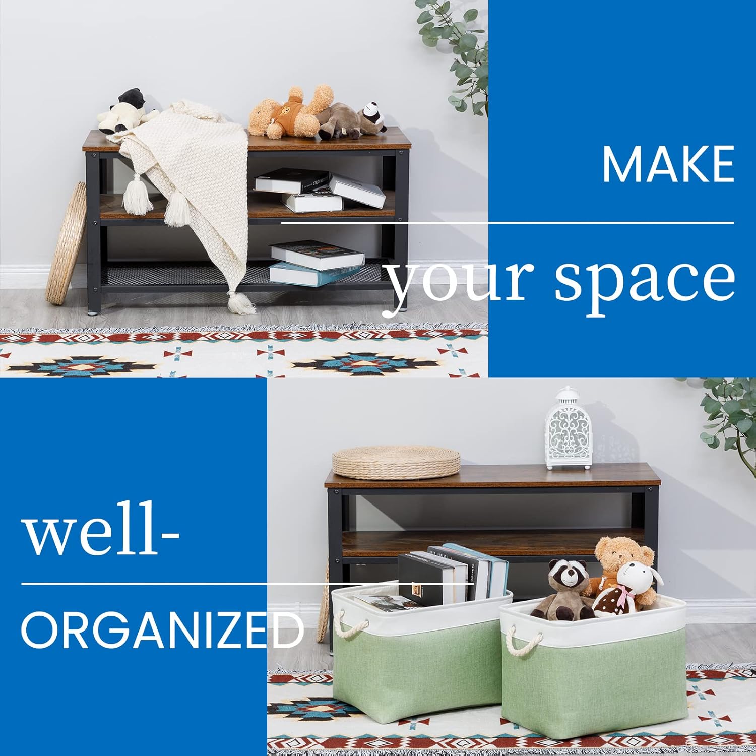 • Easy to Clean: The fabric baskets are easy to clean, dusting the basket with a soft dry cloth is recommended. Spot clean with light soapy water when needed. Not recommended to machine wash because there are a metal frame support inside