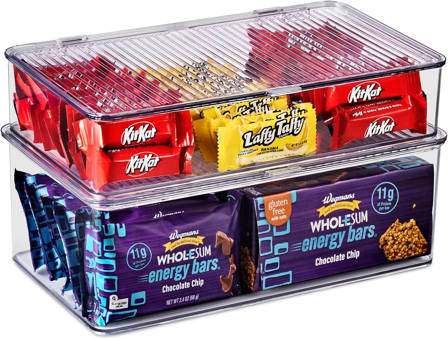 Sorbus Sturdy Plastic Storage Bins with Lid- Stackable Refrigerator Organizer Bins- MultiPurpose Versatile Lightweight Pantry Organizer- Perfect Cabinet Organizer and Storage for Kitchen- 2 Pack (S,M)