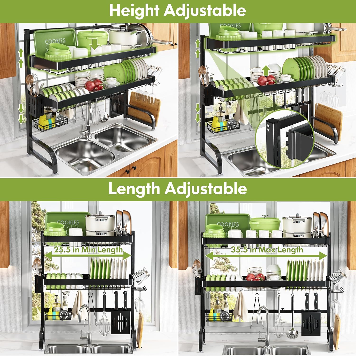 • 🔄 Expandable Design for Custom Fit: Adjust the over sink dish drying rack width effortlessly to span most standard single or double sinks, adapting seamlessly to your kitchen layout. The dish drain modular design allows rearranging tiers and accessories to prioritize space for tall glasses, wide pans, or cleaning tools, maximizing vertical storage above the sink