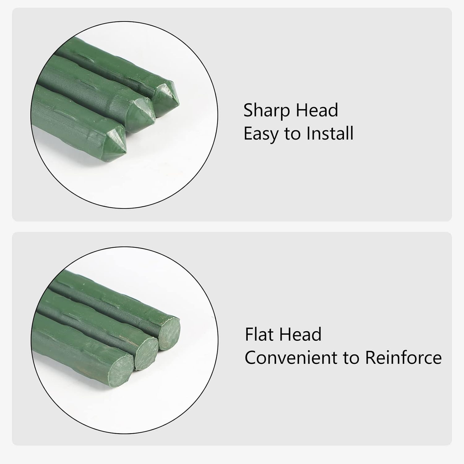 • 【Sturdy and Durable】Made of sturdy hollow steel, coated with rustproof plastic, allow the garden stakes for plants to have a longer life cycle than bamboo stakes and wood stakes, more handy and flexible than rebar and, can be reused.