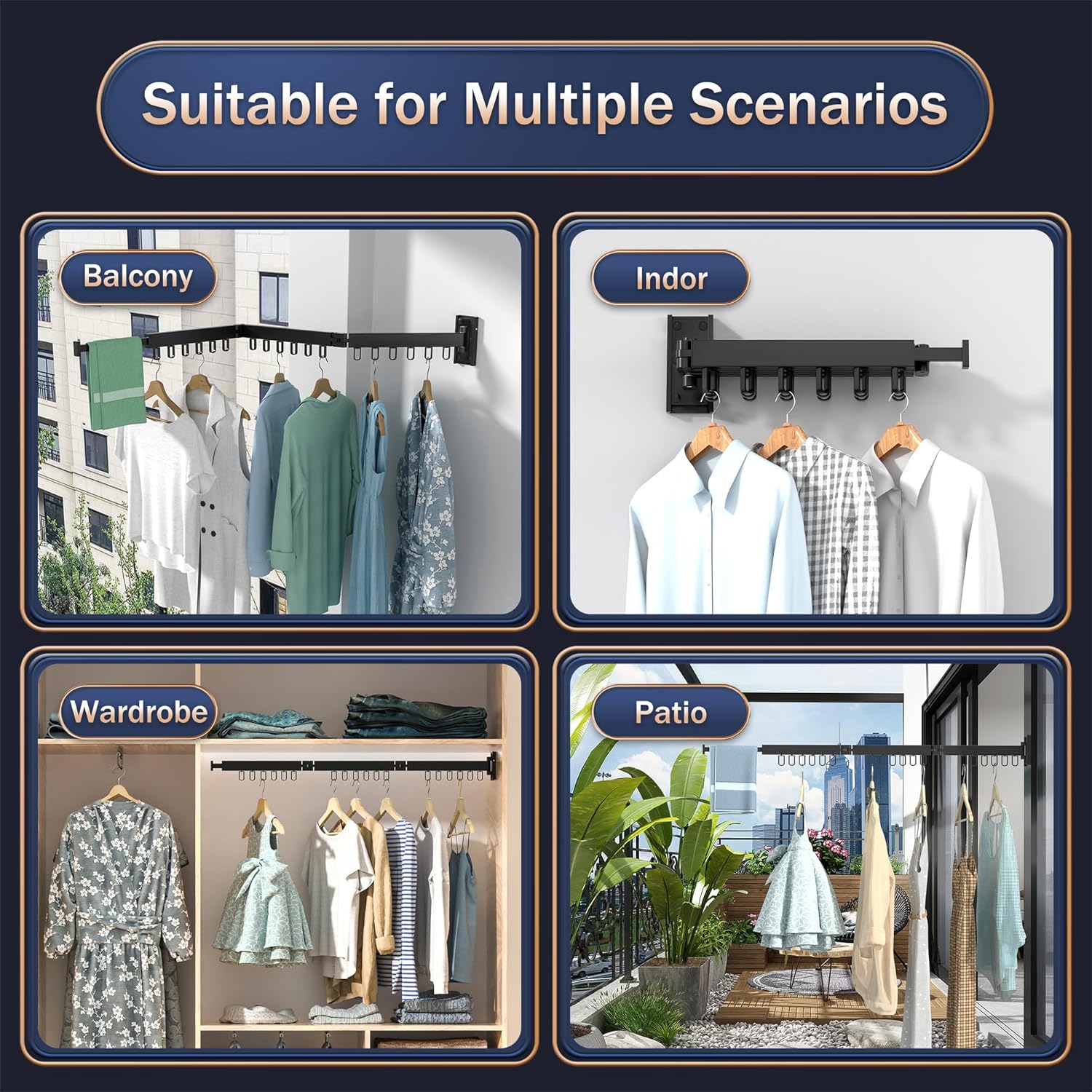 Space Saver Clothes Drying Rack, Wall Mounted, Retractable, Collapsible(Tri-Fold), for Balcony, Bathroom, Black Color