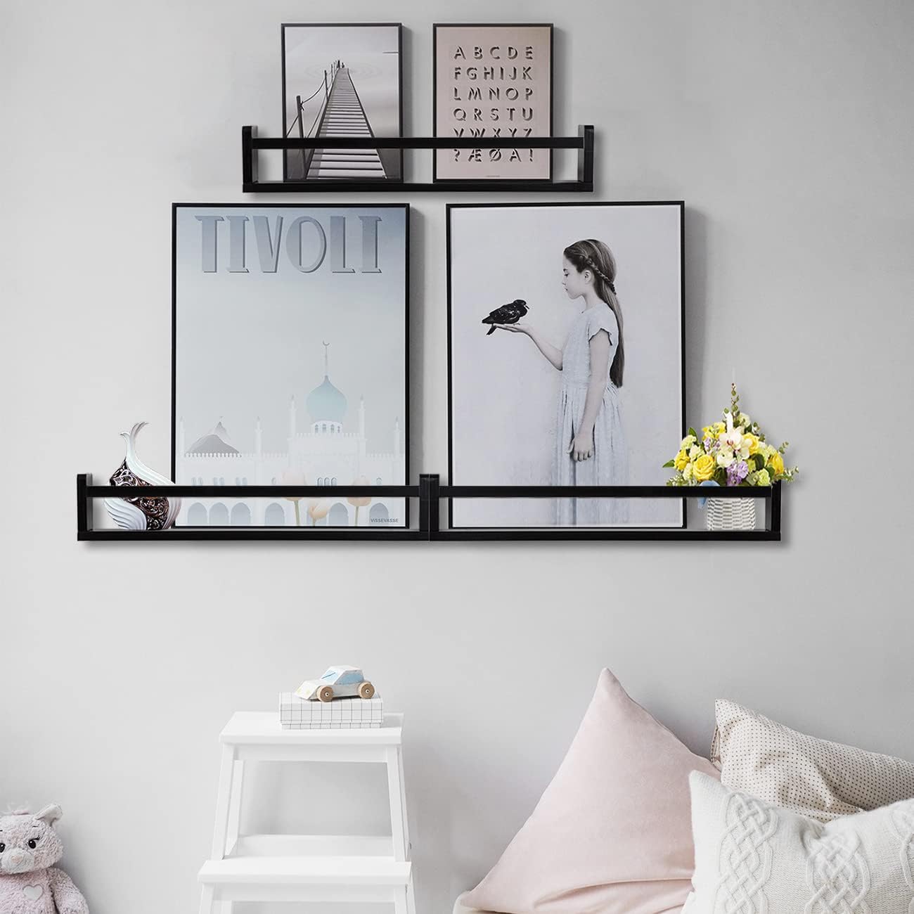 • Easy to install: Thanks to the premium solid wood and stable structure, this nursery wall shelf has an anti-toppling device, no need to worry about falling over and making books fall. Our floating book shelves come with installation instructions; just follow the installation guide and you can easily install it.